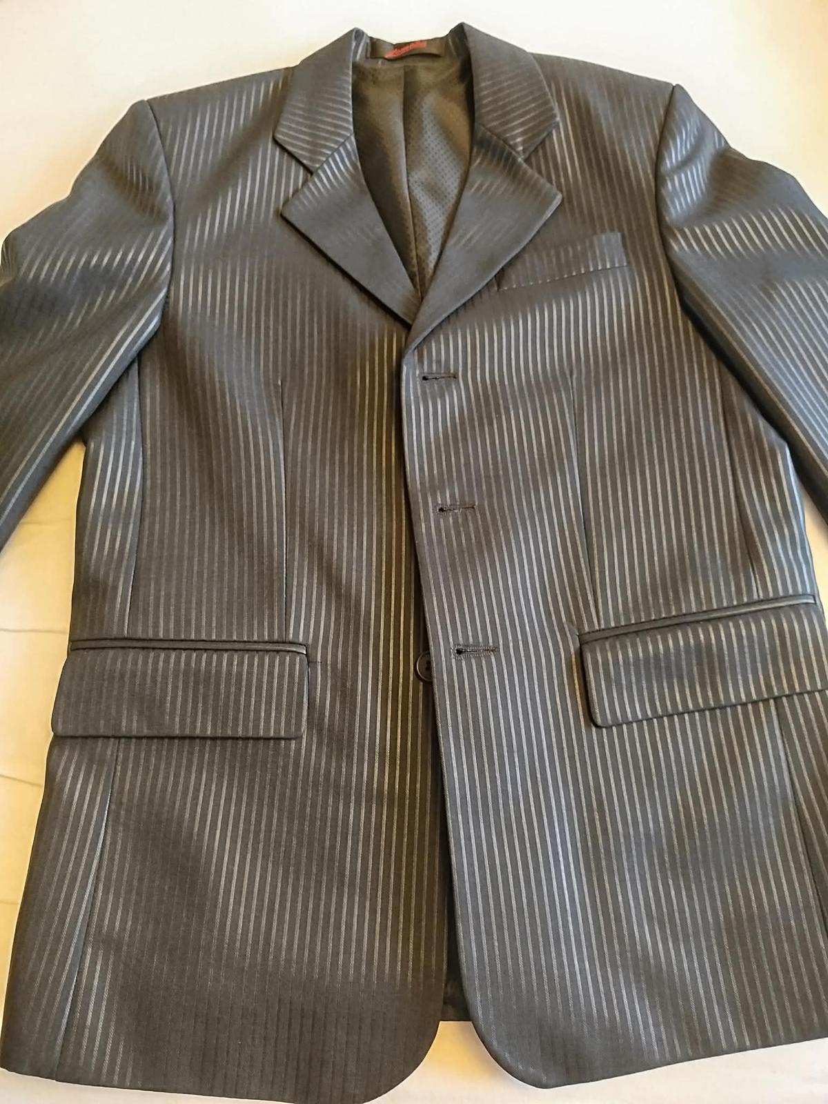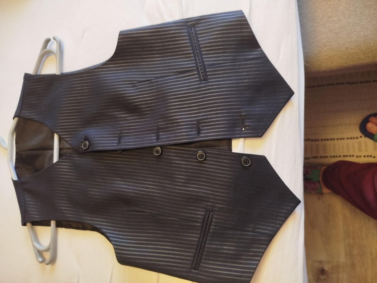 Kolegyňa predáva oblek čierny s jemným prúžkom,použitý na prvom svetom prijímaní,sako ,vesta,nohavice