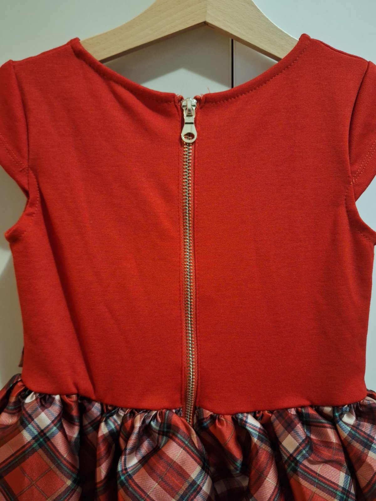 Posúvam krásne vianočné šaty . Naša ich mala na besiedke a na Vianoce . Čiže dvakrát . A však niekde ich zatiahla tak je tam chybička (dierka )ktorú treba zašit . V pravo na druhej foto na chrbáte ...