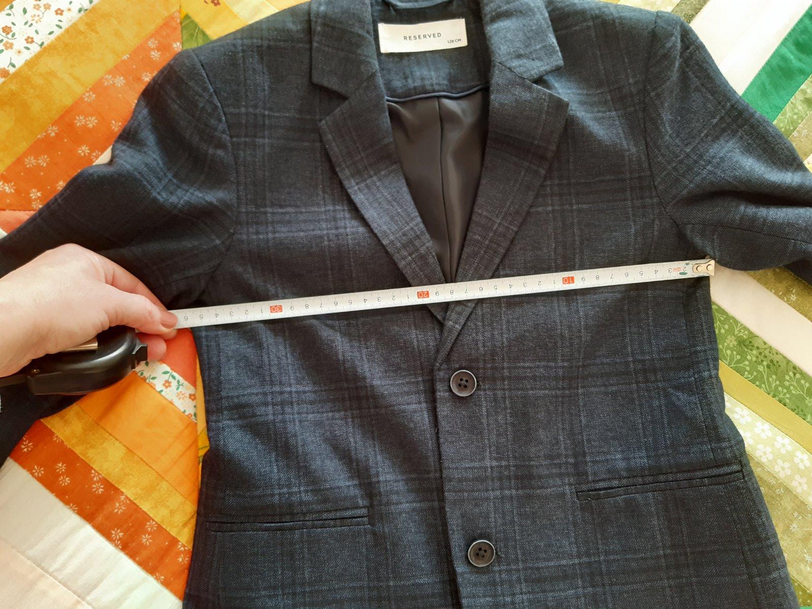 Oblek Reserved kupovany novy na 1. Svate prijimanie. Nohavice s regulaciou pasu. Sako futrovane, velmi pekne stal. Kosela oznacena ako velkost 134, ale nam sedela vyborne. Cena za komplet.