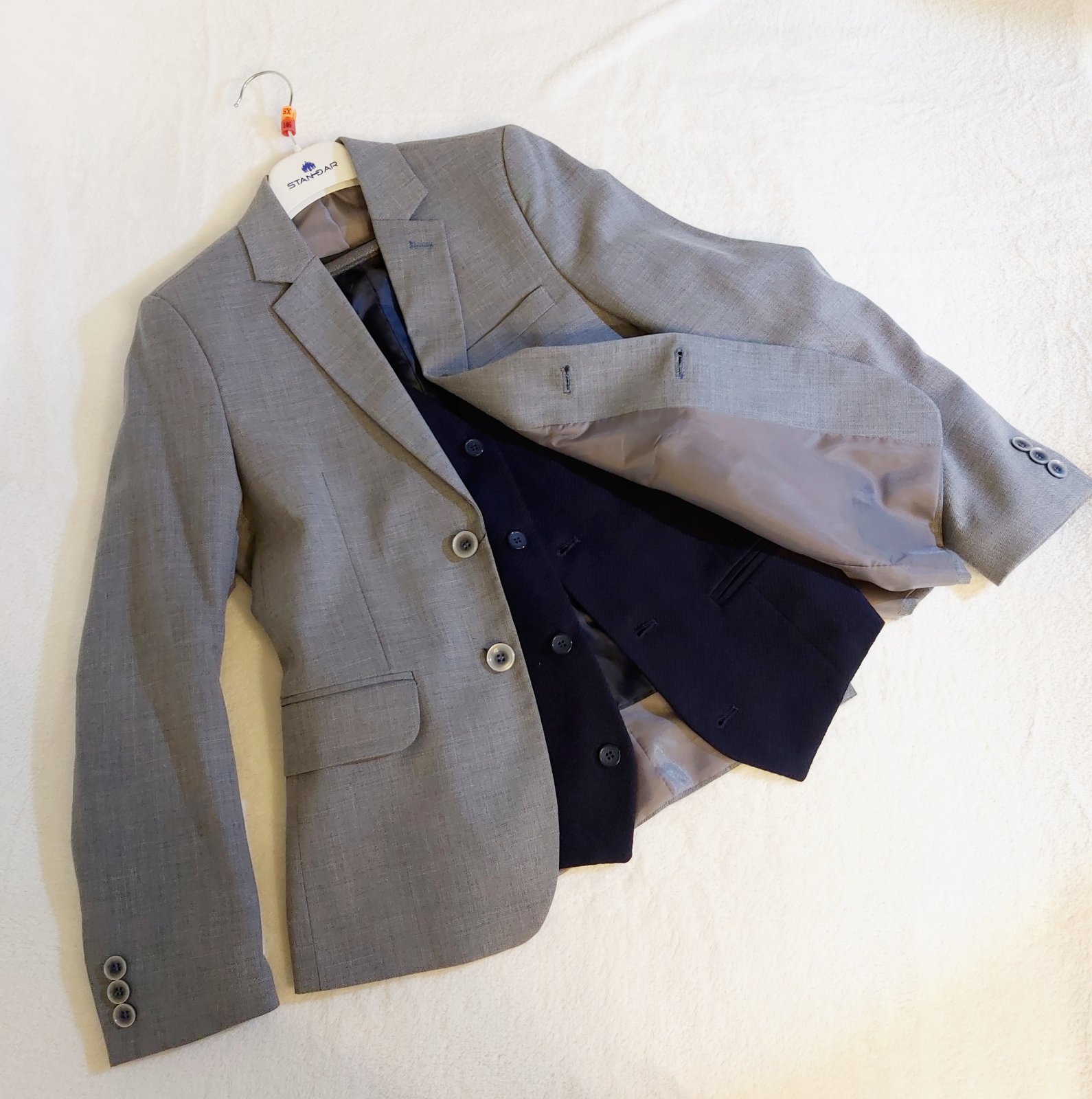 Raz oblečený oblek má 1 sv. prijimani.Velkost je 146-152cm. Je tenký, vhodný na leto. Nohavice : dĺžka 90cm, pás v kľude 2x30cm., boky 2x45cm. Vesta : dĺžka 50cm a šírka 43cm.