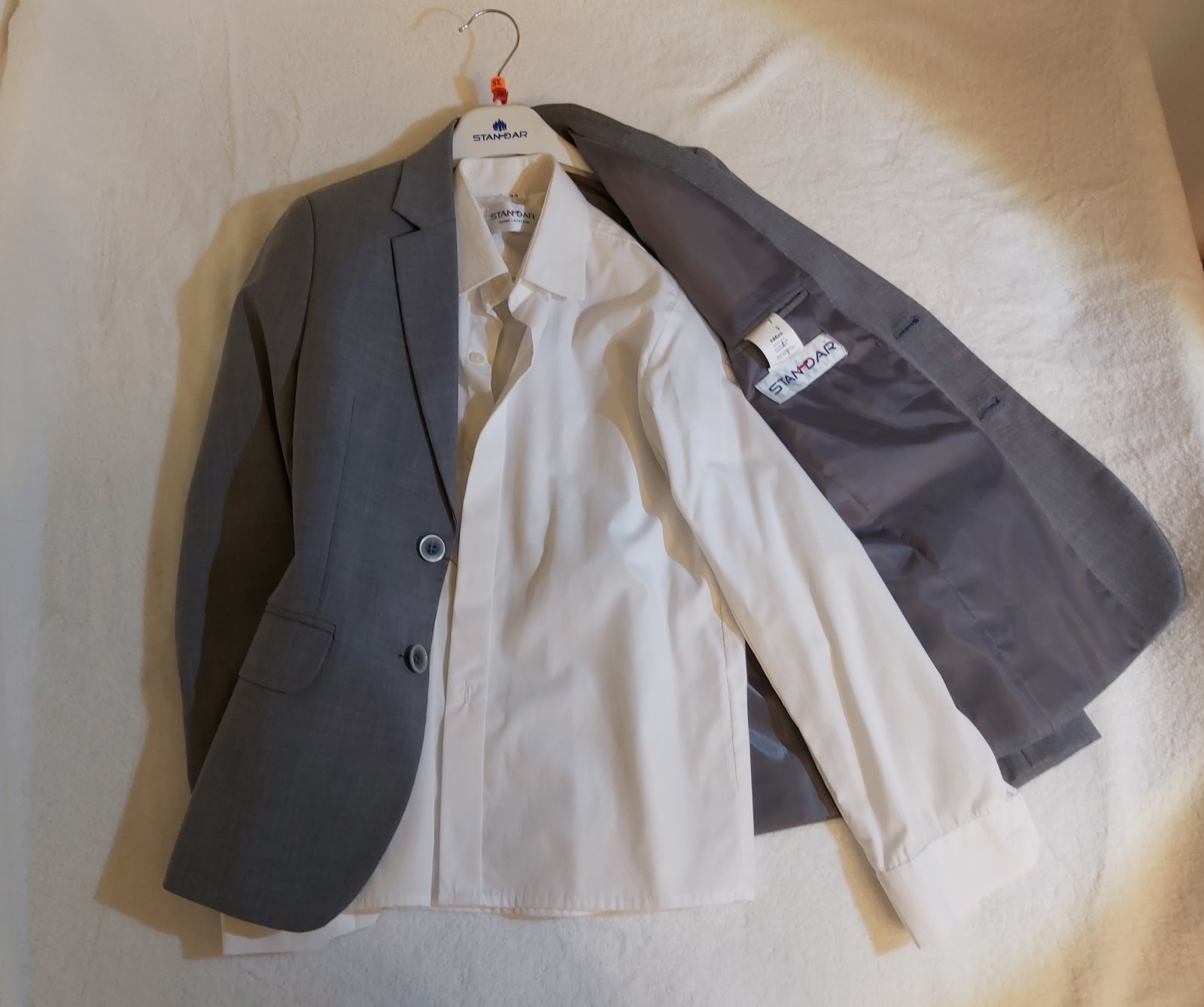 Predám chlapčenský oblek,oblečený len na 1.sv.prijímaní.Veľkosť 146XS - úzky strih,aj s bielou košelou.