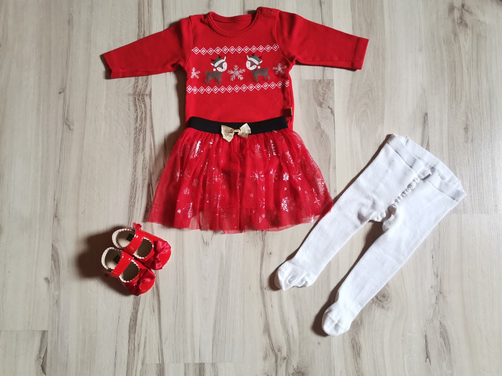 Predám vianočné oblečenie pre dievča vo veľkosti 9 mesiacov.
