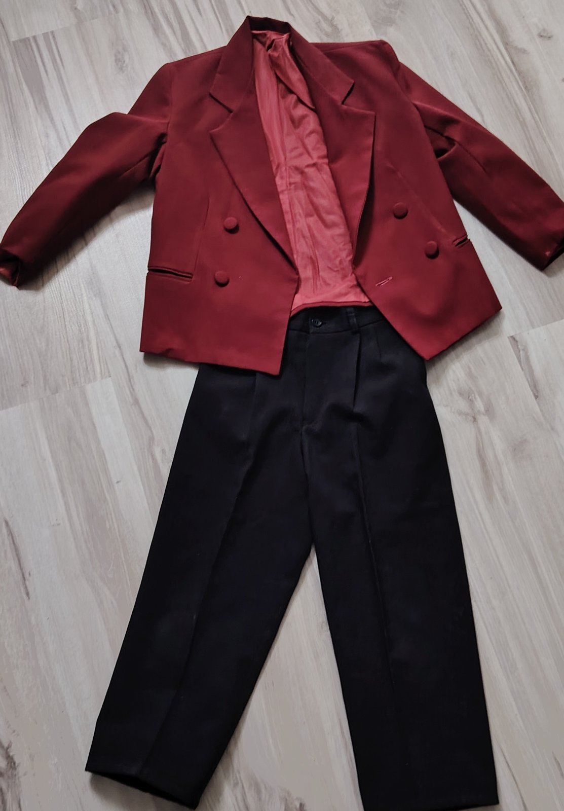 Detský oblek Žakár Elegantný chlapčenský oblek obsahuje: - čierne nohavice - biela košeľa - sivá žakárová vesta - francúzska kravata 100% PES Nohavice majú v páse gumičku v zadnej časti ...