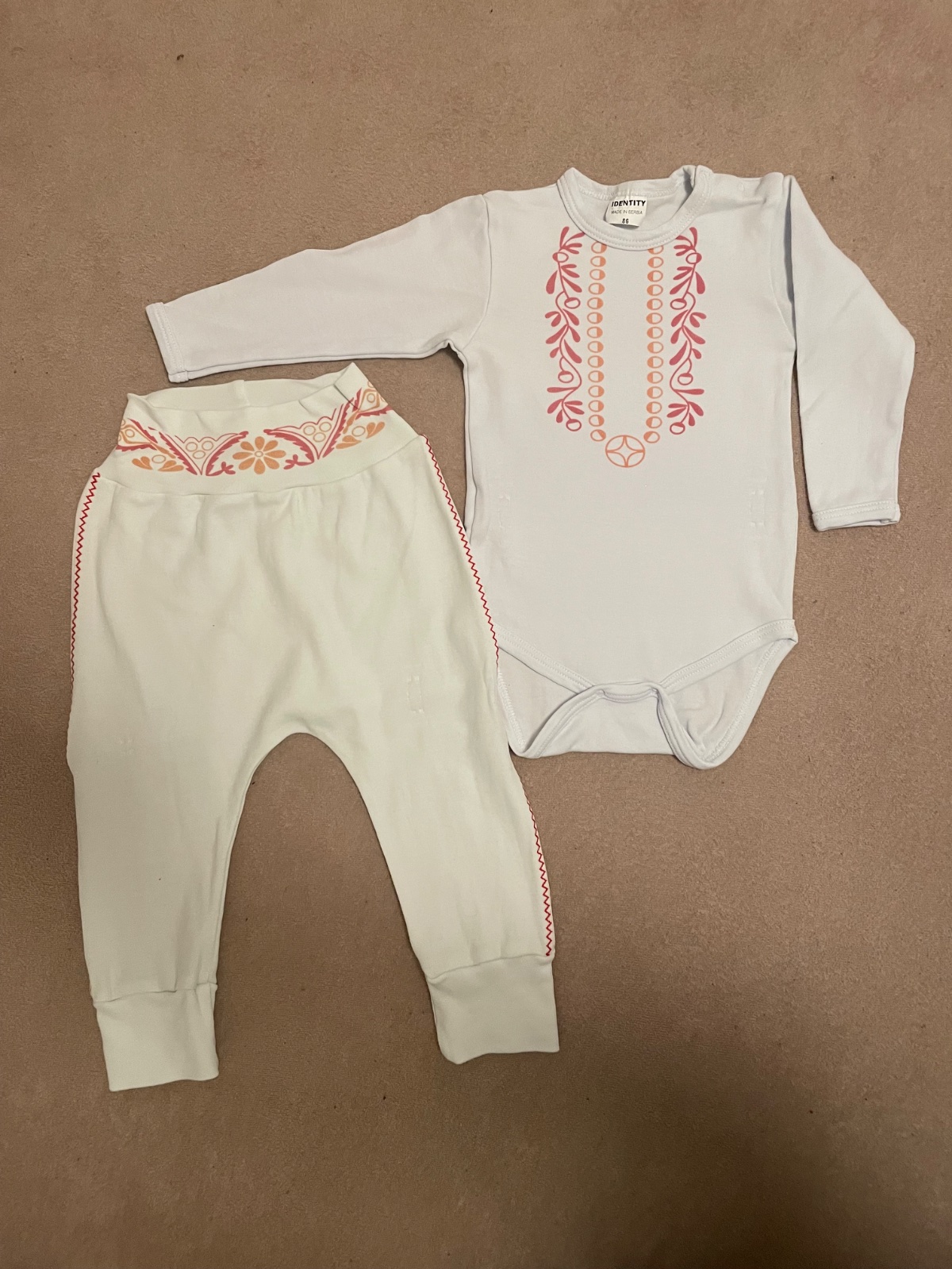Predam detske body a nohavice. Body su jasno biele, nohavice maslove. Kupene asi pred rokom, oprate a ani raz oblecene. Zabudla som na to. Je to velkost 86, ak treba premeriam. Srbsky vyrobok, predpokladam, ze aj ornament srbsky.