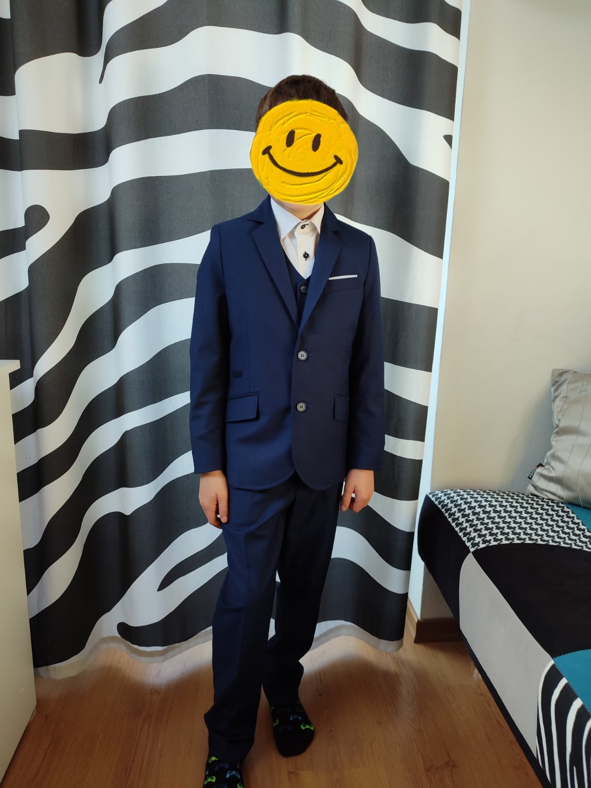 Ponúkam na predaj tento krásny komplet oblek oblečený jedine na prvom svätom prijímaní. Hneď sme z neho vyrástli. Je v tom sako, nohavice s gumičkou na páse, košeľa dlhý rukáv, vesticka, kravata, ...