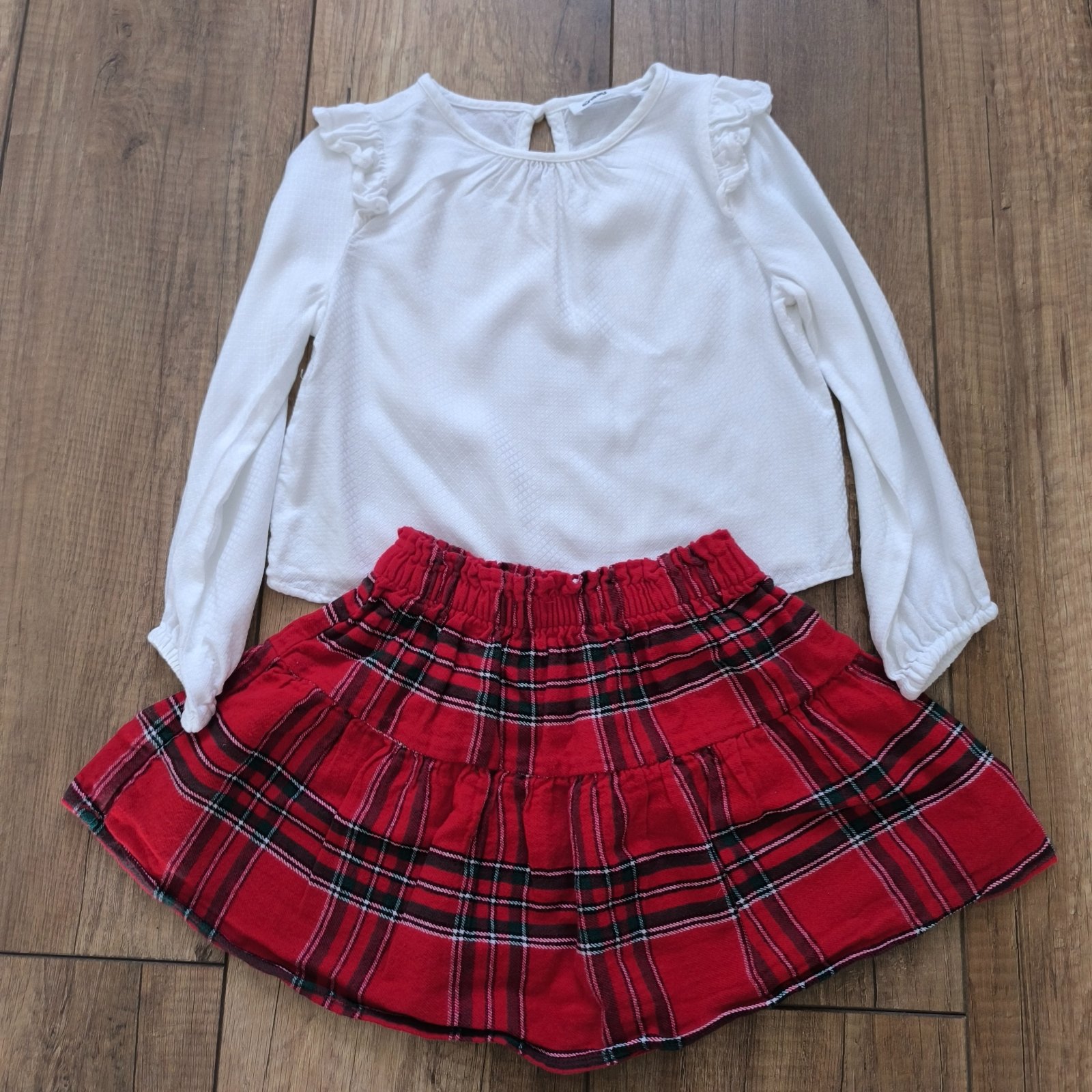 Predám vianočný komplet veľ 98. Obsahuje blúzku a karovanú sukňu. Použité raz na vianočnom fotení. Top stav.