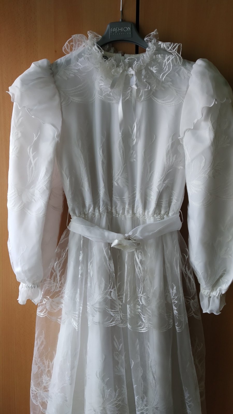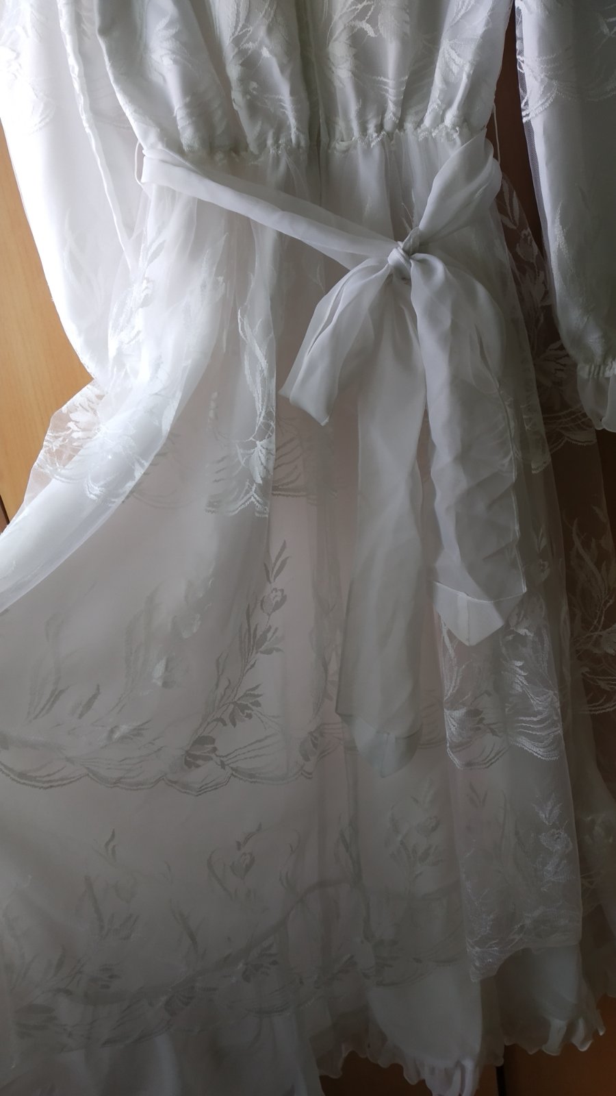 Krásne bielučké šaty perfektne prepracované do posledného detailu, vzadu na viazanie na mašličku, bezchybné.