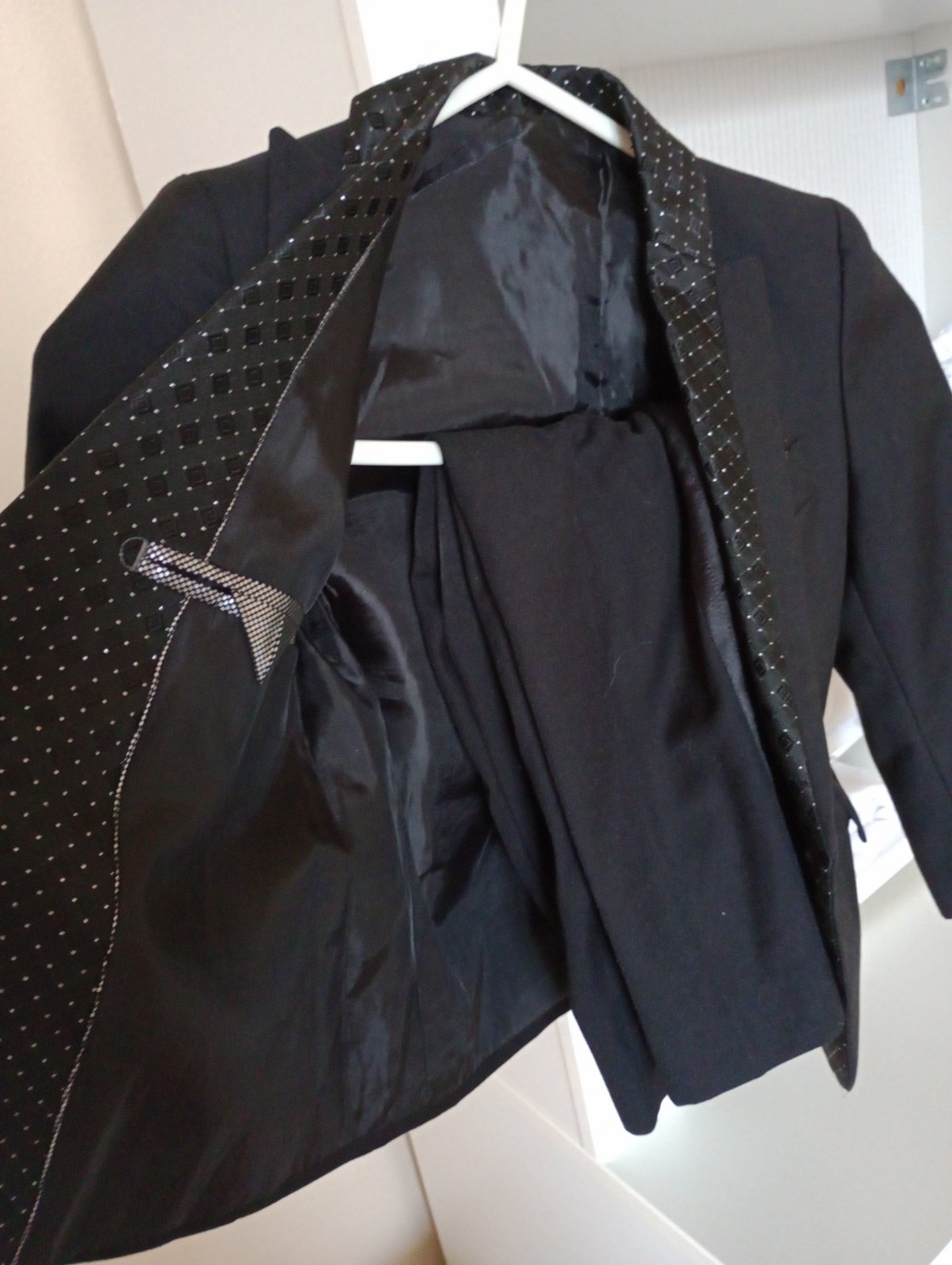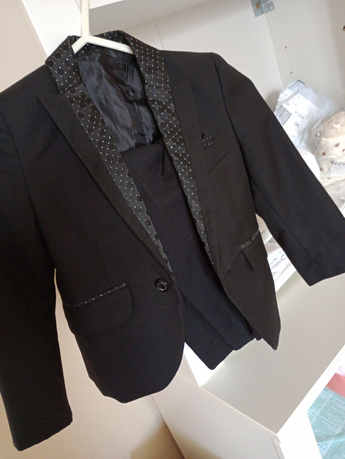 Krásne bez poškodení, k saku prikladám nohavice značky H&M sú úzkeho strihu s reguláciou v páse