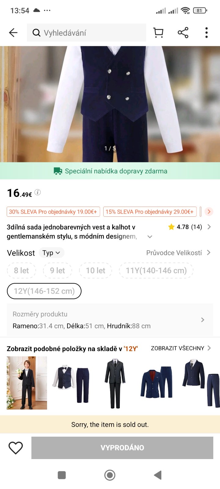 Nohavice: dĺžka 87cm, pás 2x 30cm v kľude, boky 2x42cm.