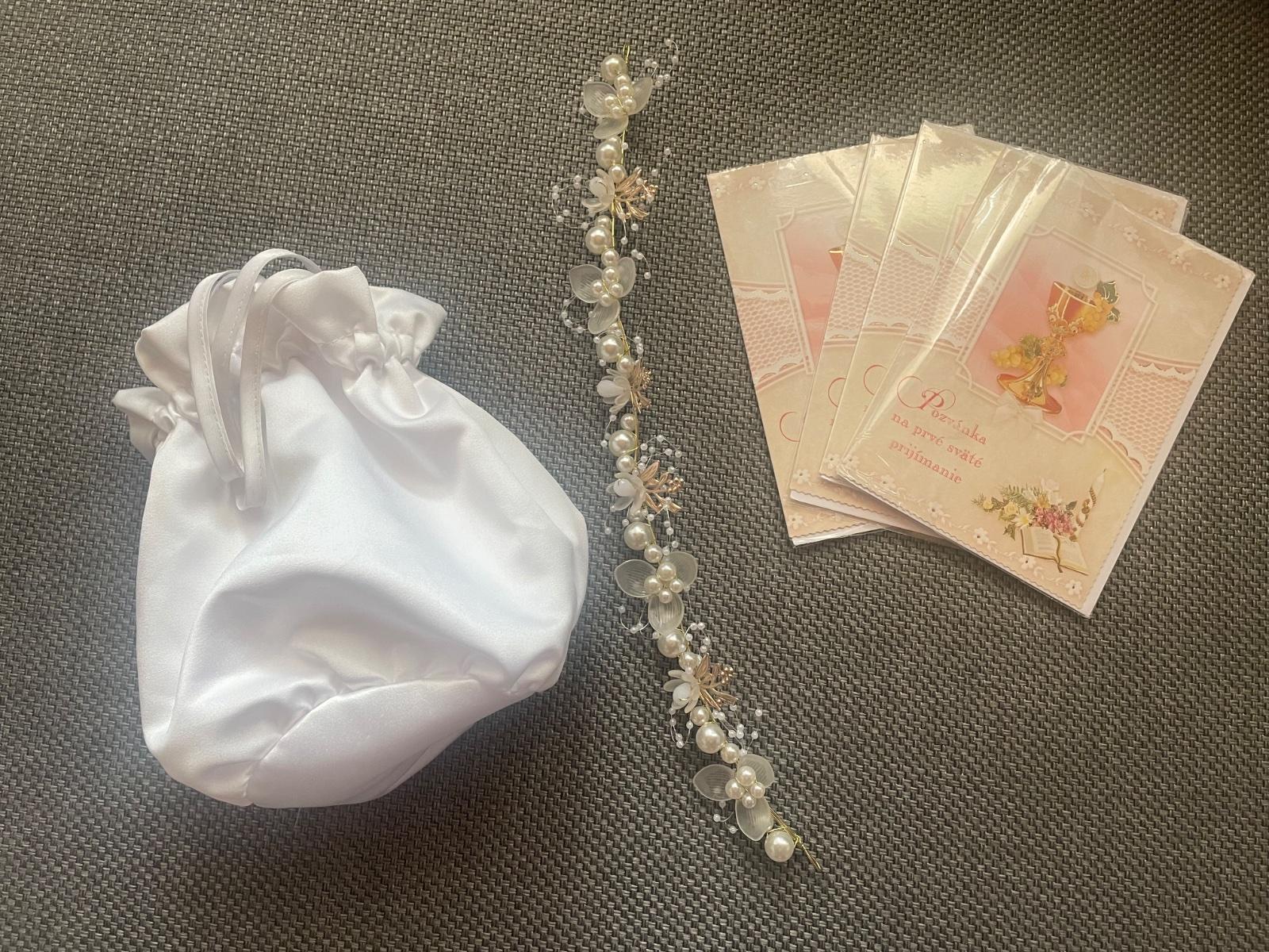 K šatám pridavám aj kruh pod šaty, kabelku bielej saténovej farby, čelenku do vlasov(bez stužky) a 4ks pozvánok.