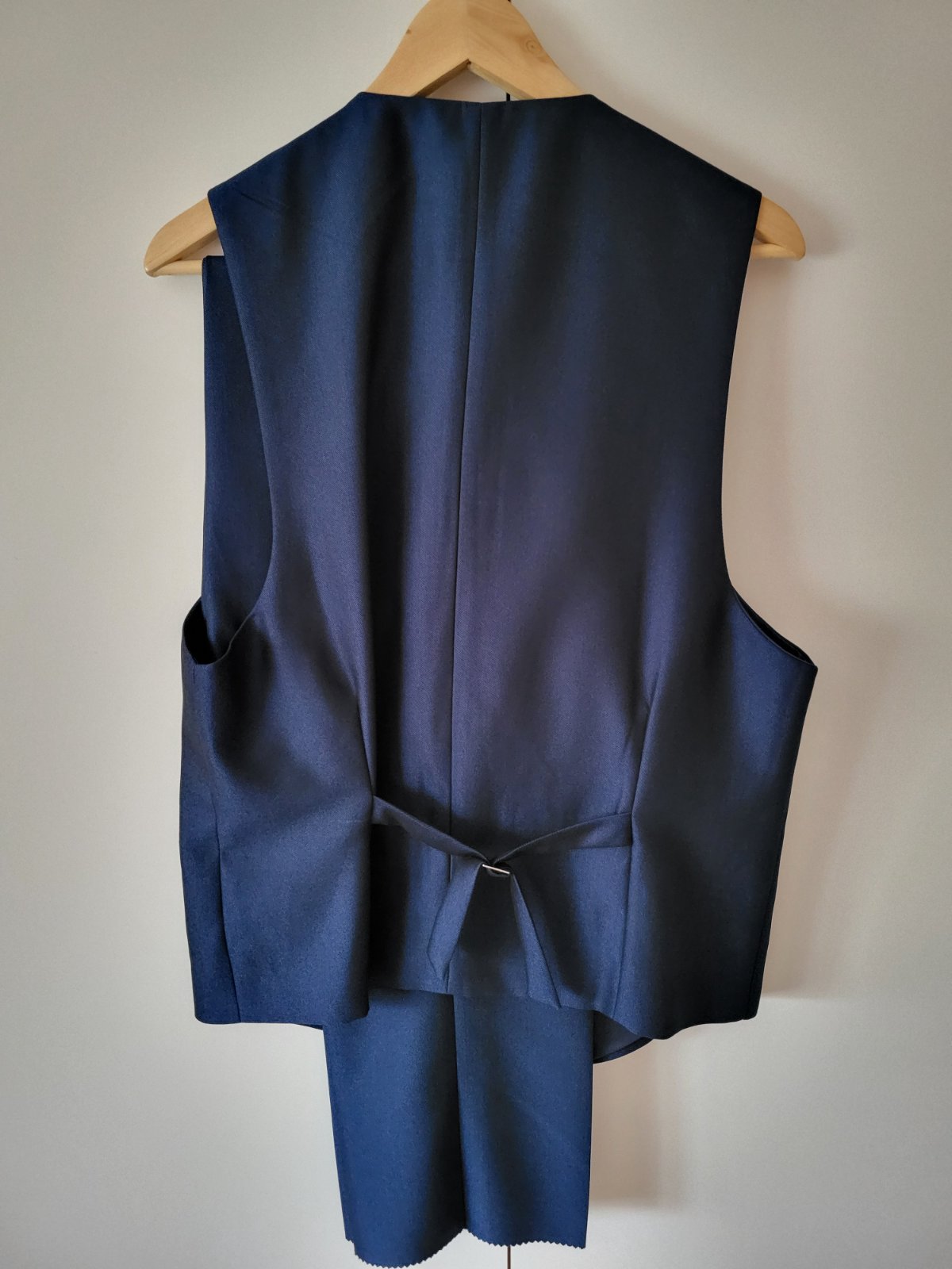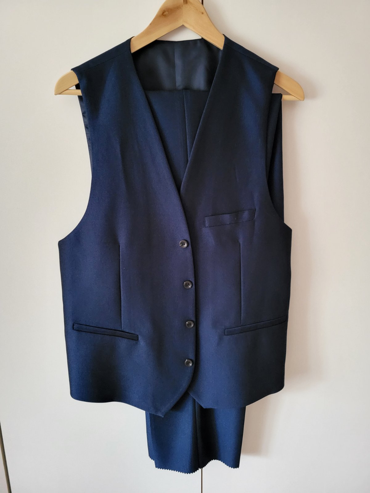 Modrý oblek vesta nohavice veľkosť.L