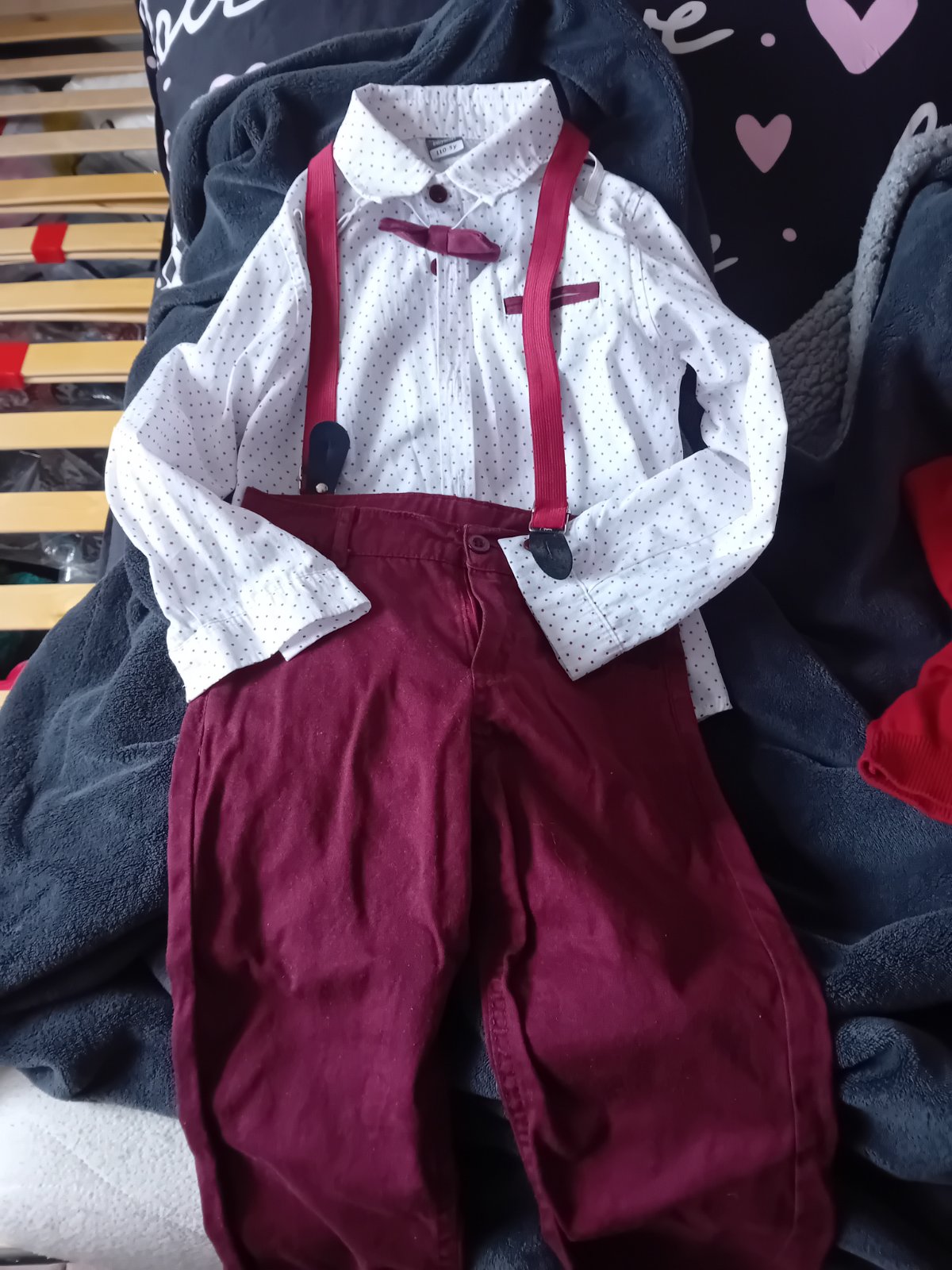 Predám slávnostné oblečenie pre chlapcov, párkrát oblečené,je písané na 5 rokov, ale je menšie na 4 roky,je ku nemu aj červený svetrík H&m.