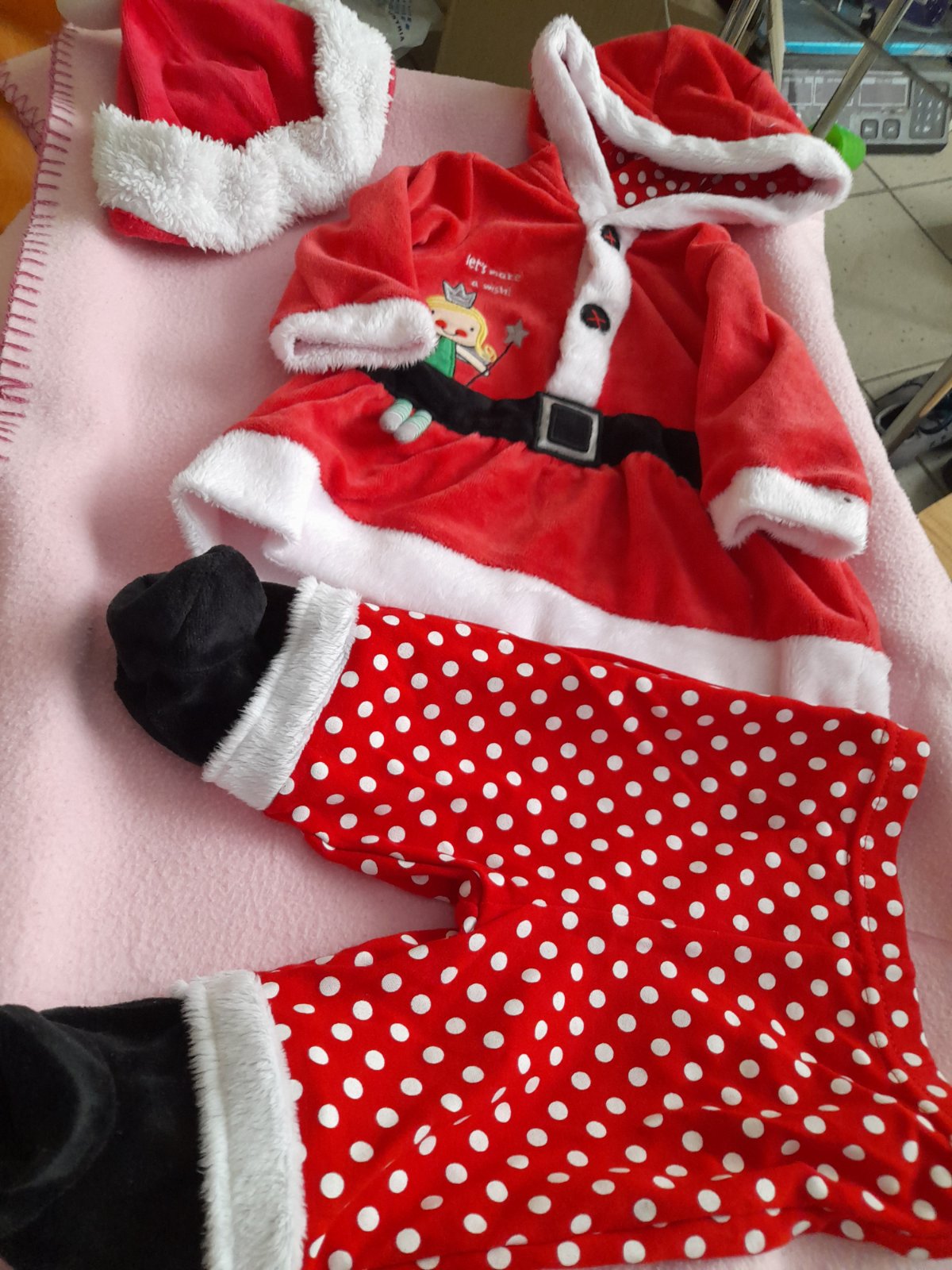 Predám vianočný komplet číslo 62 na bábätko dievčatko 0-3 mesiacov oblečene 2 x v peknom stave .