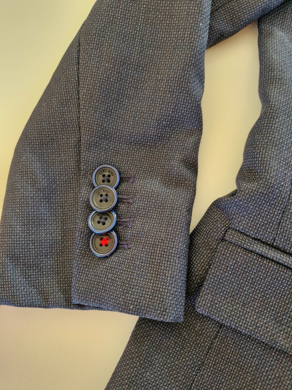 - Super stav - farba krajšia ako na foto, klasická tmavomodrá námornícka. Vonkajšia dĺžka nohavice 87 cm. Pás v kľude 28 cm. Ešte sa dá natiahnuť a regulovať zvnútra gumičkou. Sako dlžka 52 cm. R...