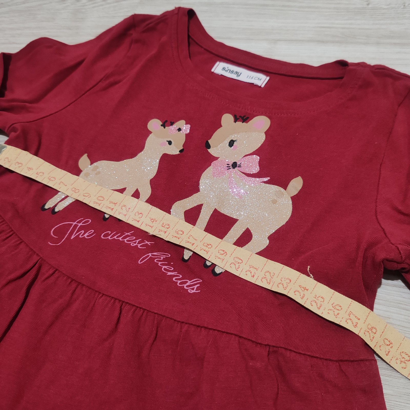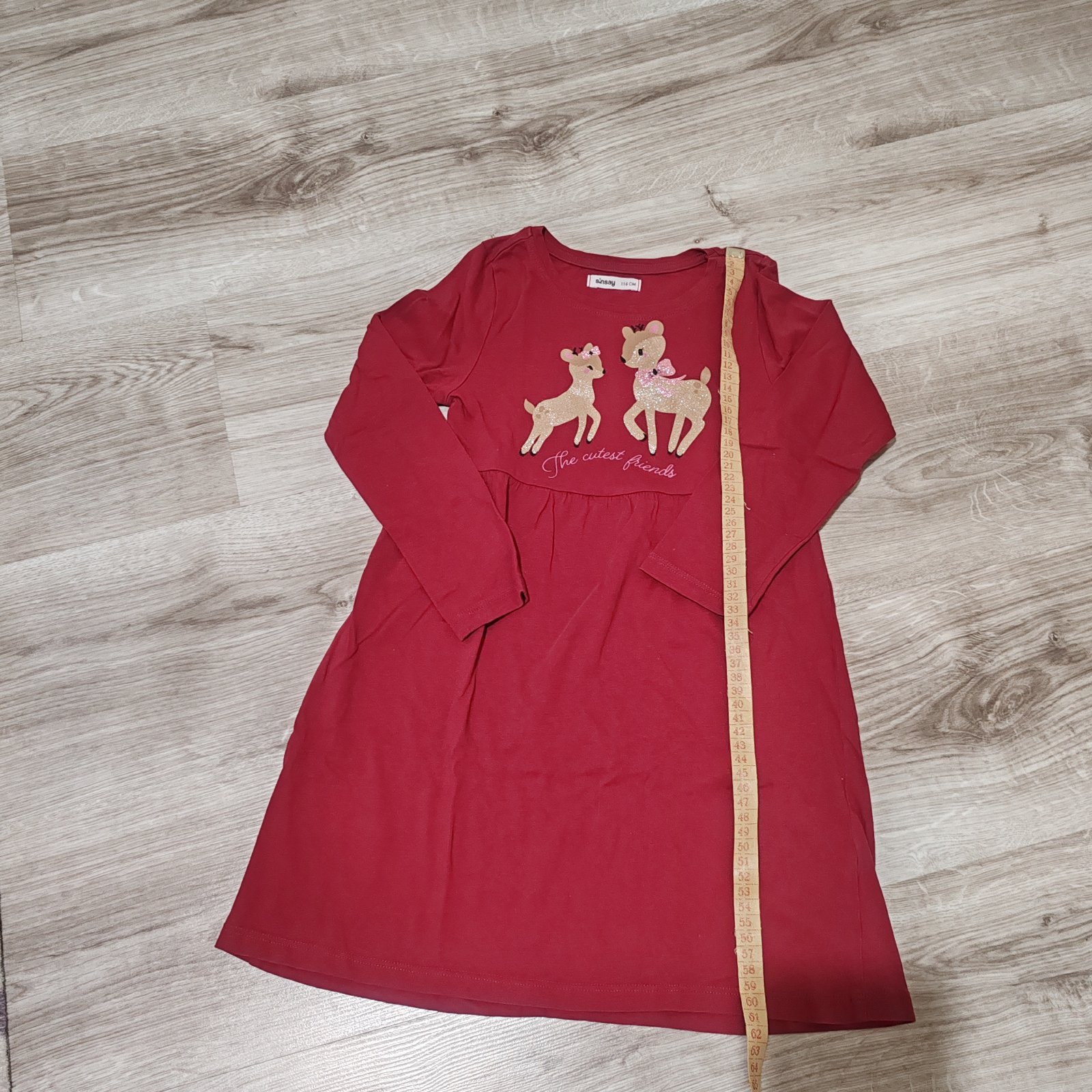 Pekné šaty, bordové so srnkami 🦌 značka Sinsay ( veľkosť 116), bordová, rozmery na fotkách.