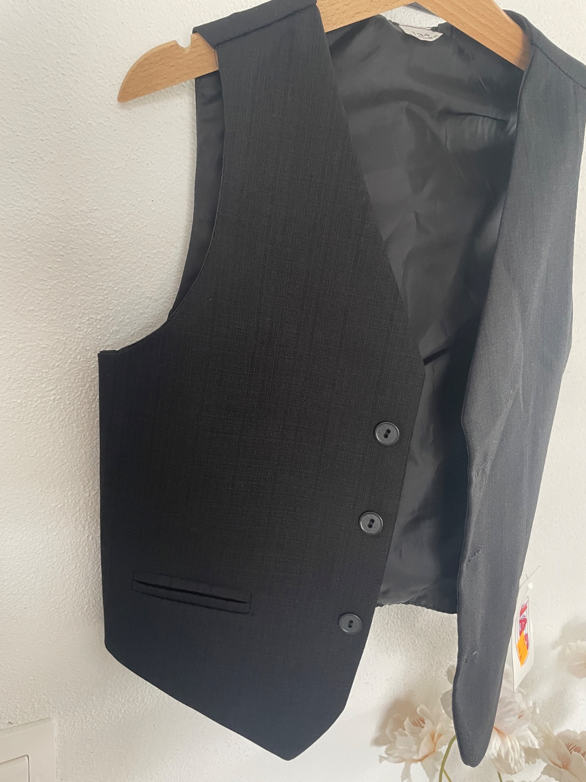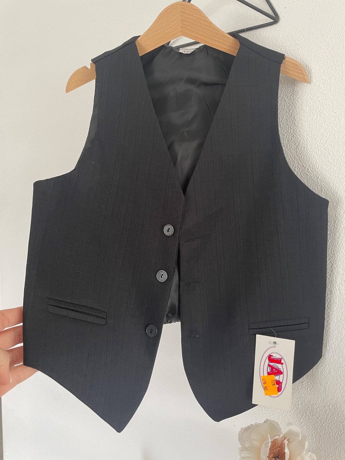 raz obleceny oblek, velkost 134, znacka Galjus gate dlzka 81cm, pas66-80cm sako dlzka 63cm, rukav od krku 71, od pleca 54cm