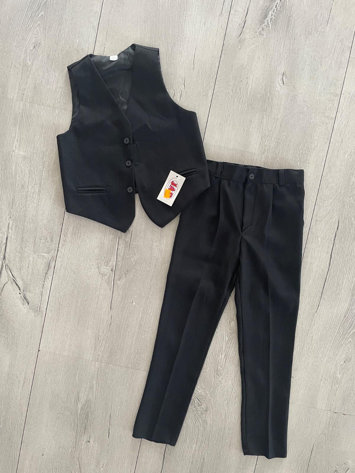 Kvalitne vypracovany Chlapcensky oblek sako + nohavice tmavosedej farby s jemnym pruzkom v rovnakej farbe. Pratelny v pracke. Obleceny 2x. Velkost 9 rokov / 134, miery na foto. Bez poskodenia.z UK....