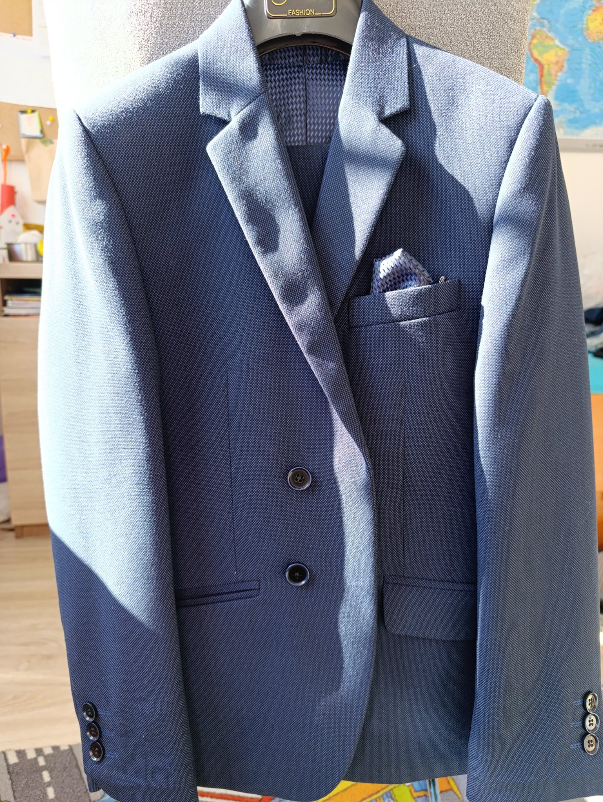 Oblek na prvé sväté prijímanie. Veľkosť 140 pekná tmavomodrá ..rukáv od ramena je 53cm,