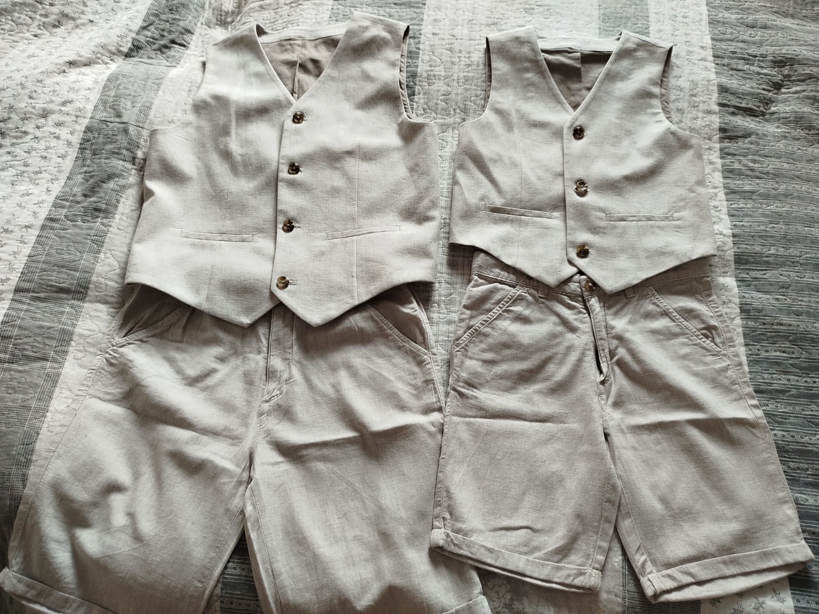 Oblečené 1x na svadbe,farba je krásna béžová,prírodny materiál,ku šortkách sú aj traky, značka CA