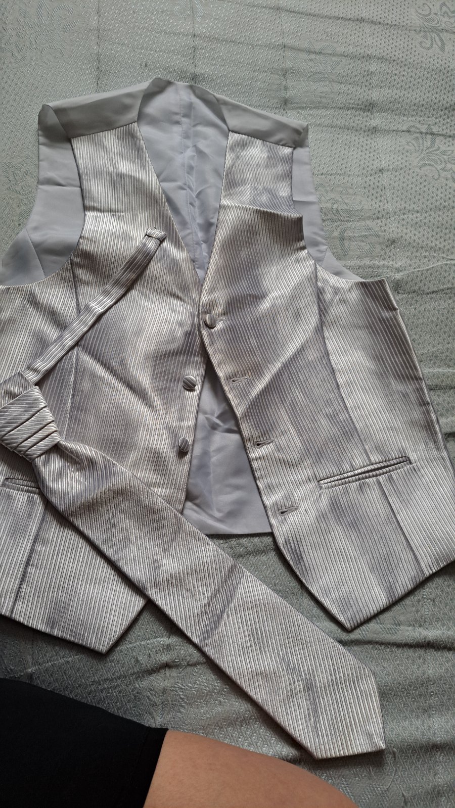 Predám manželove sako plus kravatu uplne ako nove raz oblecene na svadbe.V prípade záujmu premeriam.Mozna dohoda o cene