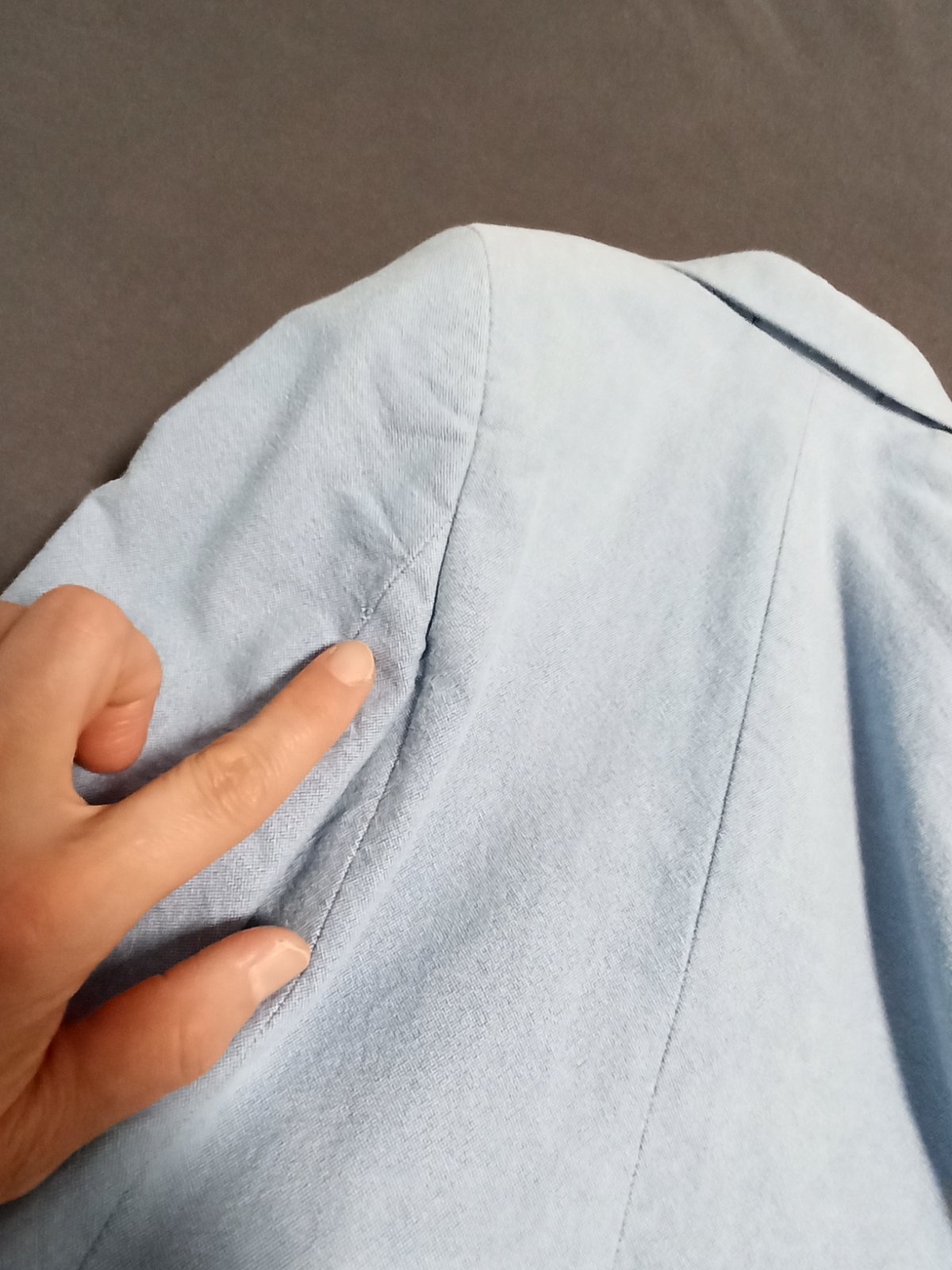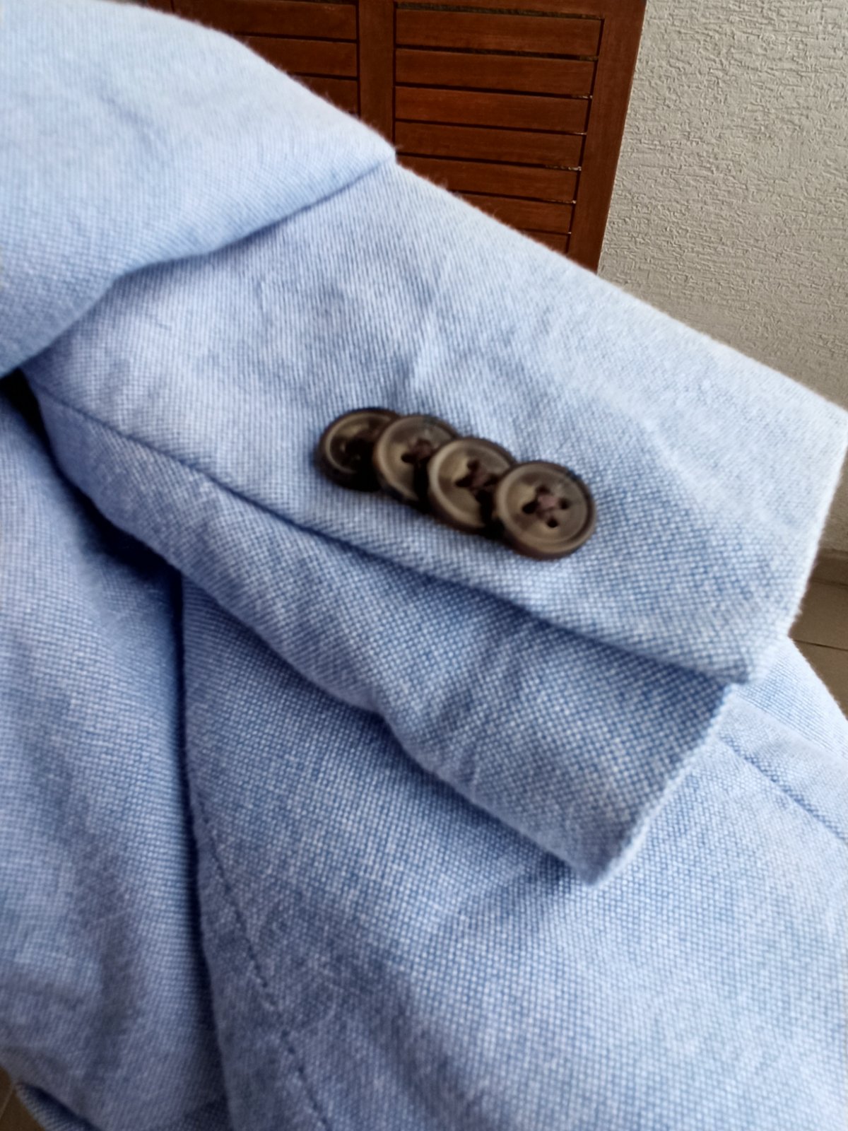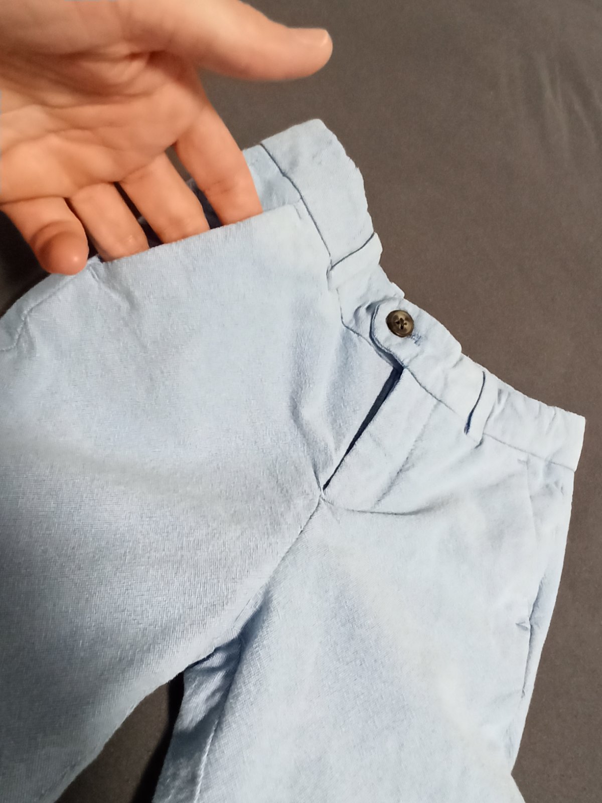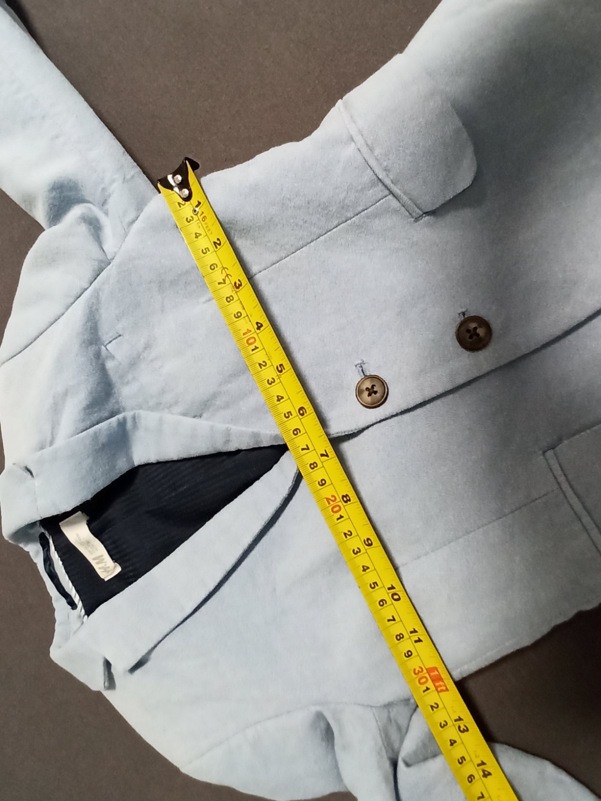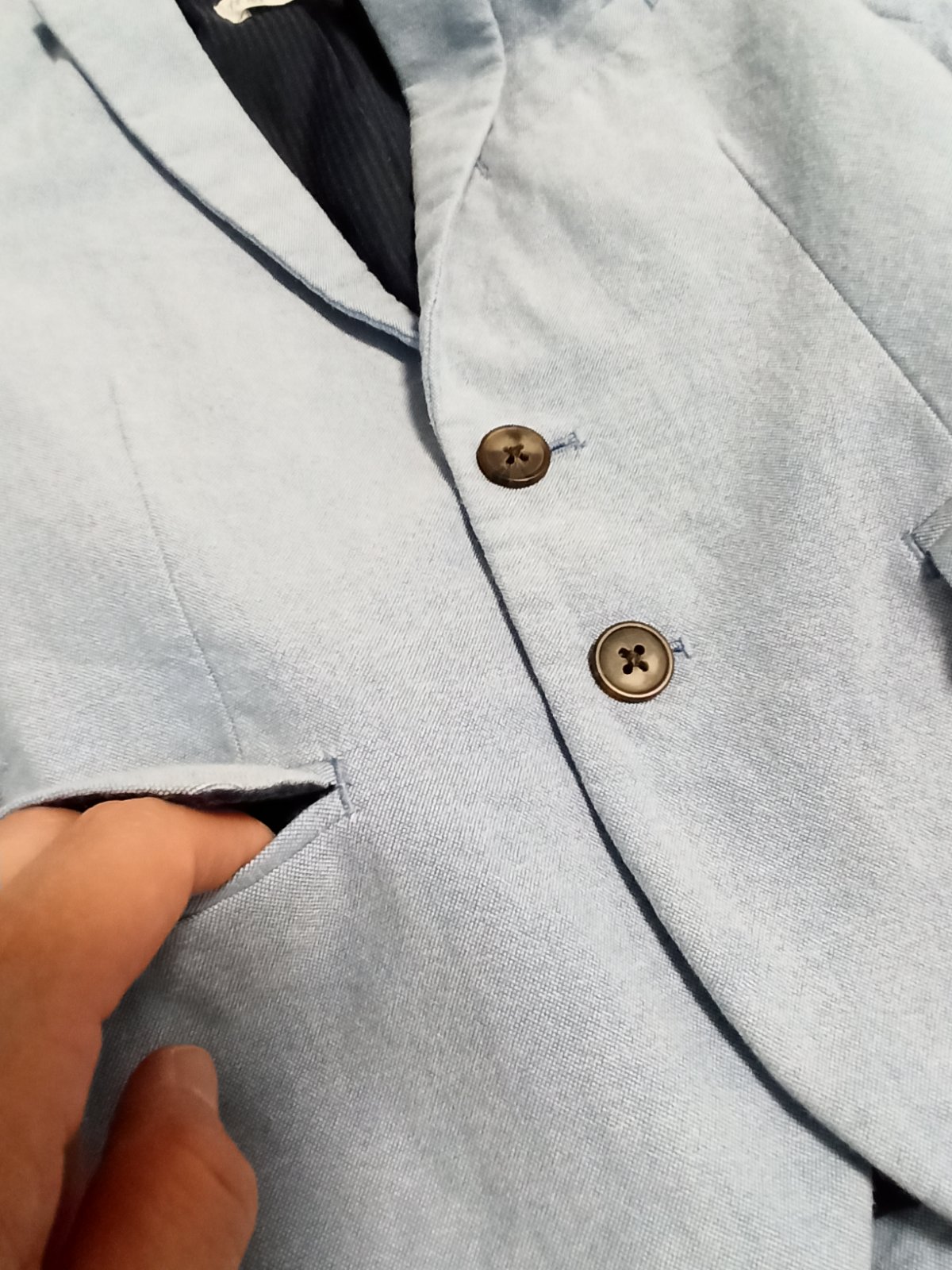nadherny oblek pre dzentlmena, ramena maju jemne vypchavky. material aj spracovanie je perfektne. na veste som nasla a odfotila malu chybu v latke..mozno z pierka na svadbe alebo to bolo uz od novo...