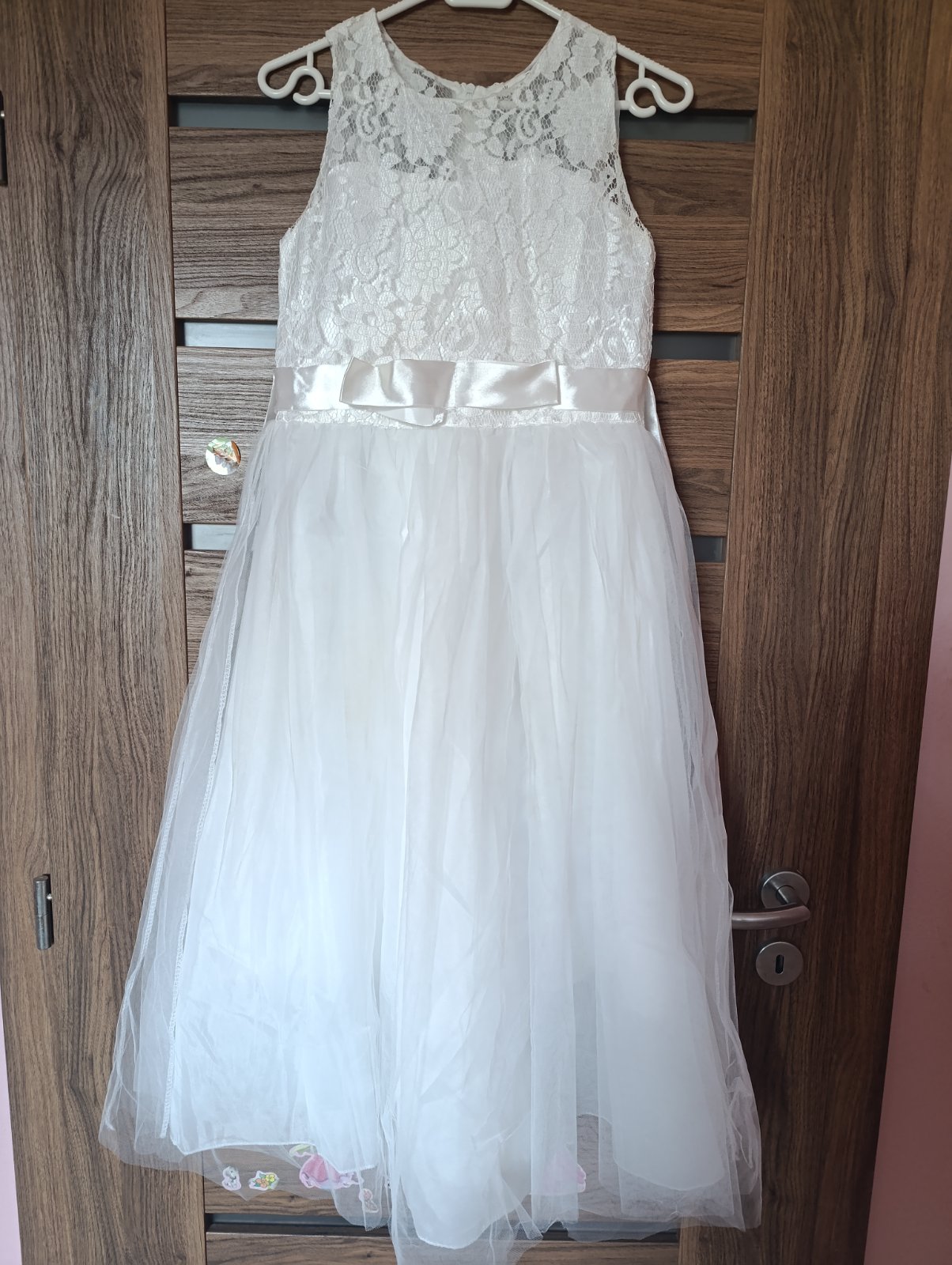 Jednoduché šaty, Tylova sukňa a krajkovy vrch, cez pás ide saténová stuha. Veľkosť 140-146.