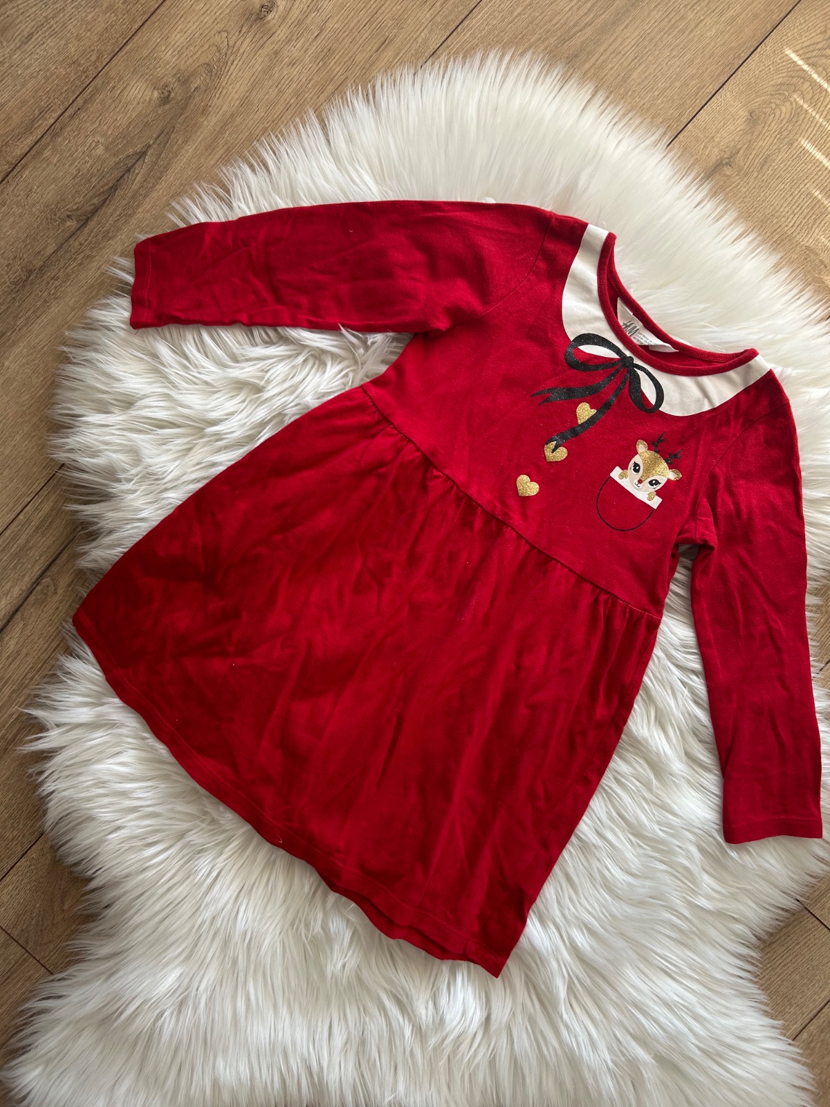 Saty s vianocnou tematikou,nosene aj normal v zime,pisu velkost 98, 2-3 roky, podla mna skor 104 velkost, Next, zlata nit na sukni,aj sob zlaty