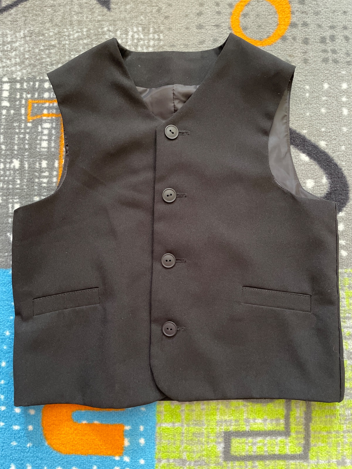 Krasna vesta na prilezitost, velkost 146, dlzka vpredu 44cm, sirka 38cm Cena je 5 eur Mam aj nohavice cierne,velkost 152,ale skor 146, mam v inzeratoch,aj bielu koselu mozem ponuknut Cely komplet p...