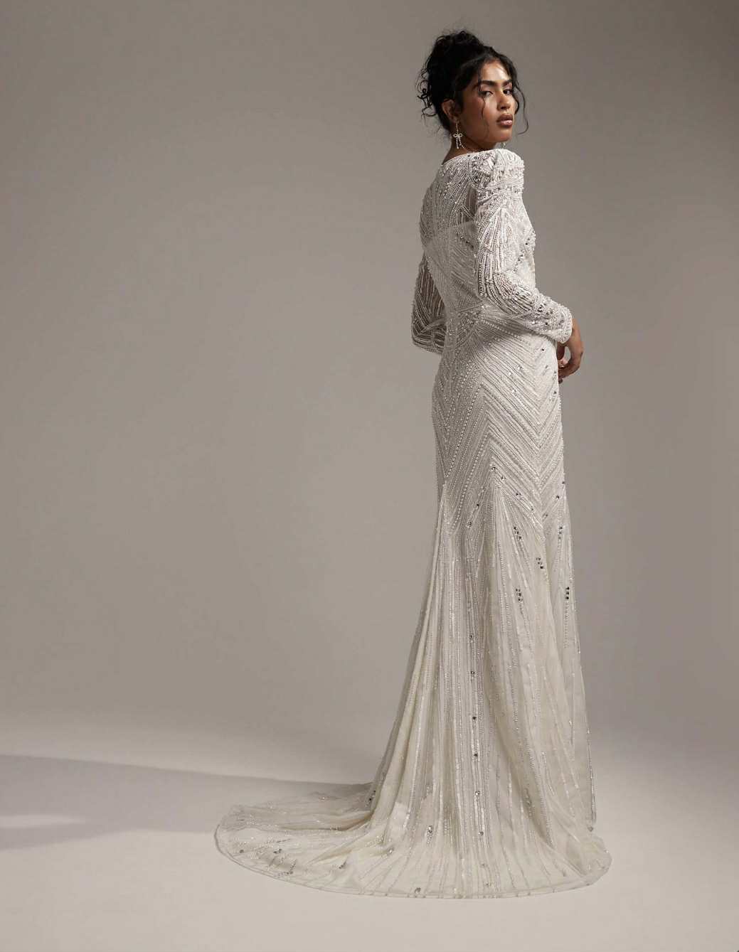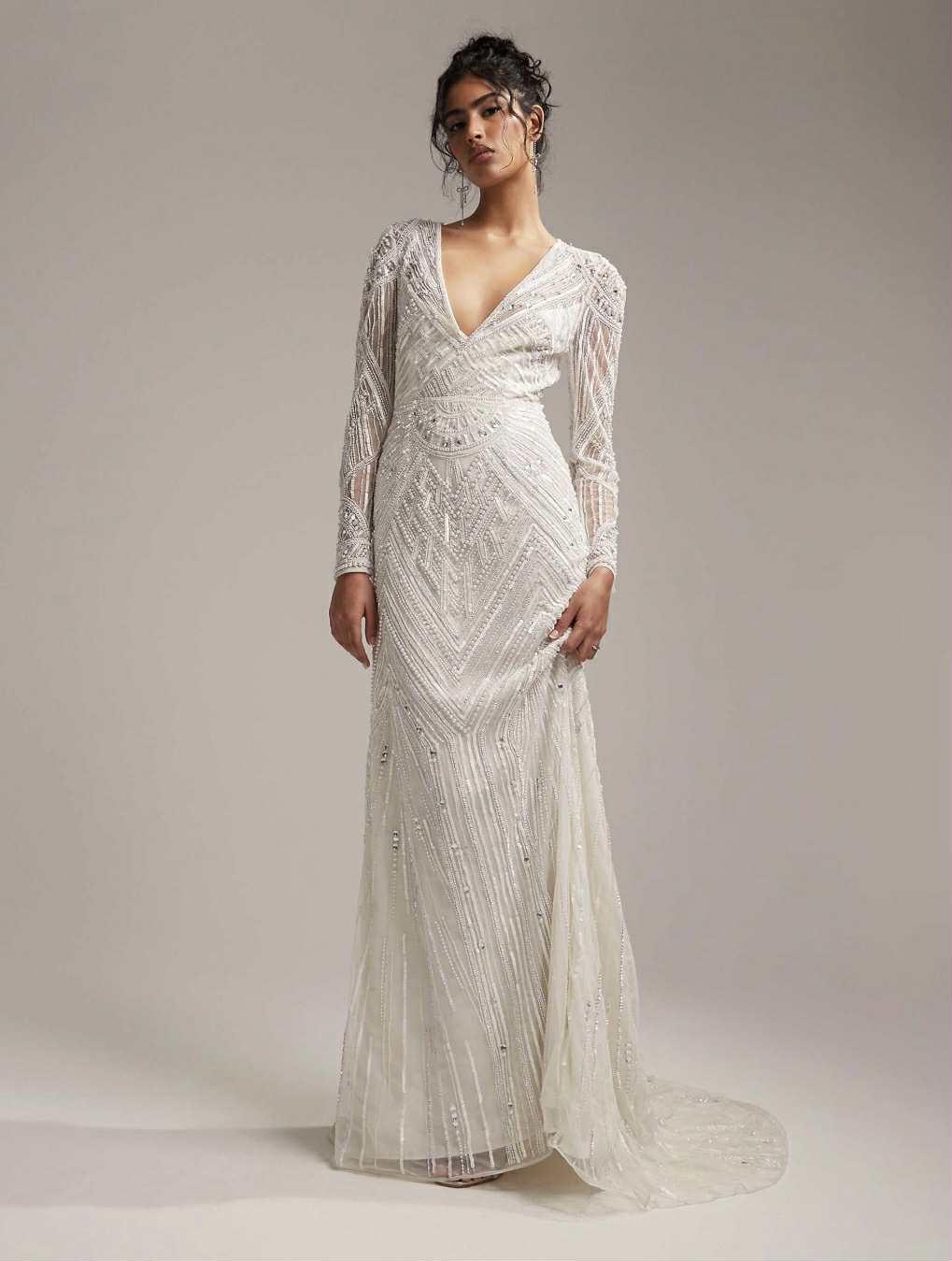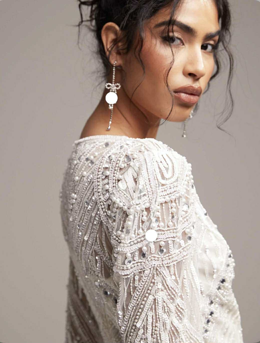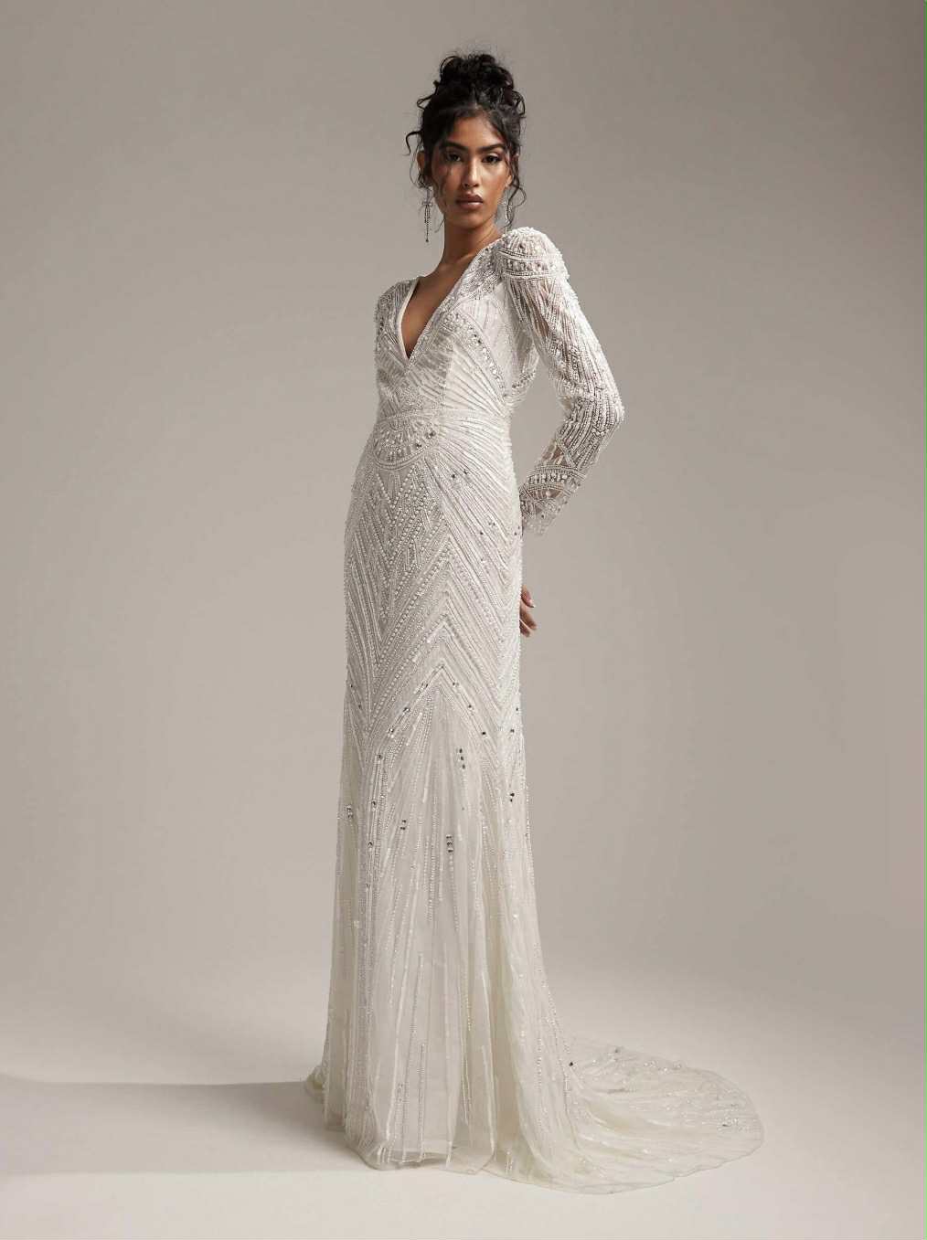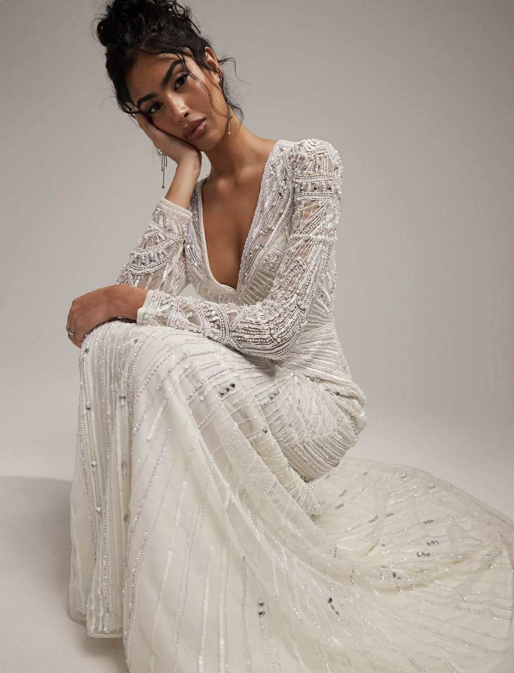 Svadobné šaty ASPS DESIGN Millie s dlhým rukávom,Vintage štýl s goralkami a flitrami,velkost XS,majú podšívku,dlzka:146,5 cm,zadná dlžka 180,5cm,pas 31,5 x 2,boky 38 x2,ruky od pazuchy 44,5 cm,výstrih od krku dole 23 cm