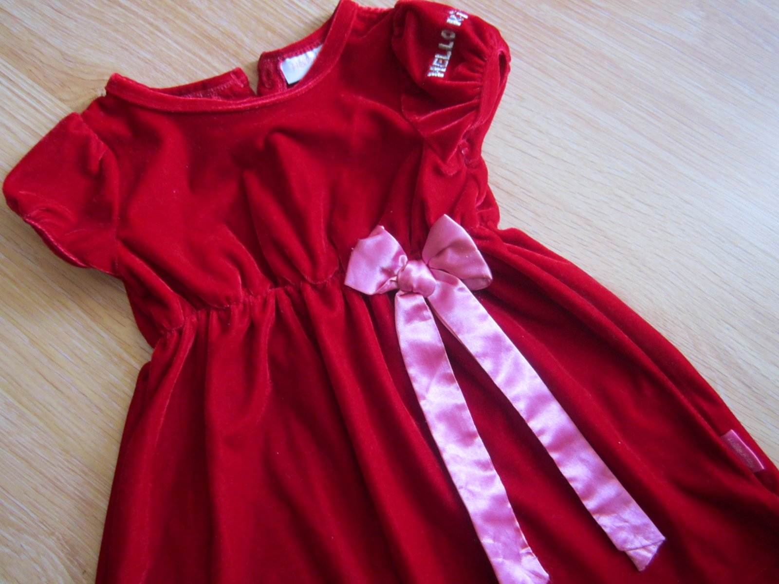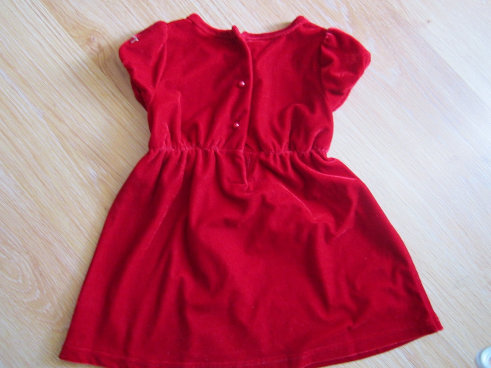 Krásne červené šatičky bez dier či fľakov,,zamatové,,dĺžka-53,5cm ,v pase je guma,vzadu na 3 gombíky................+ pošta