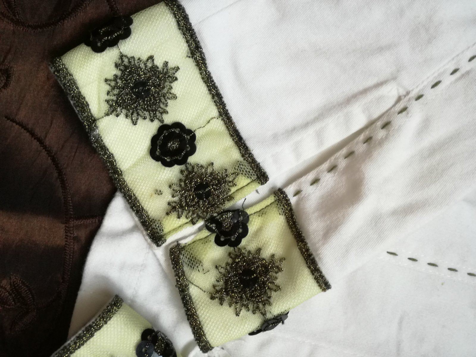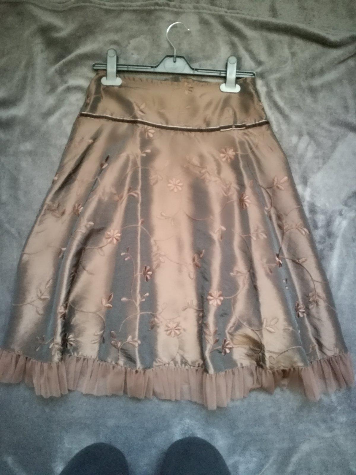 Predám raz oblečené na svadbe a inak len skladované slávnostné oblečenie. Sukňa veľkosť 158 . Sačko 146.