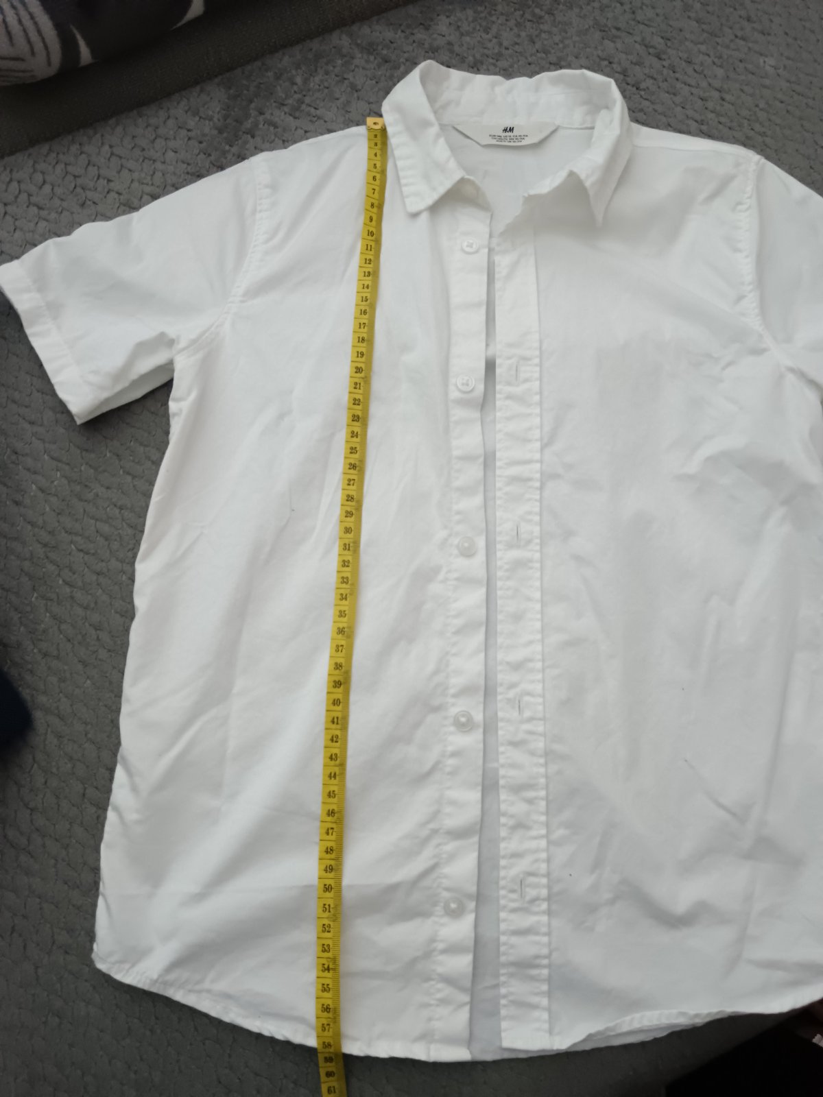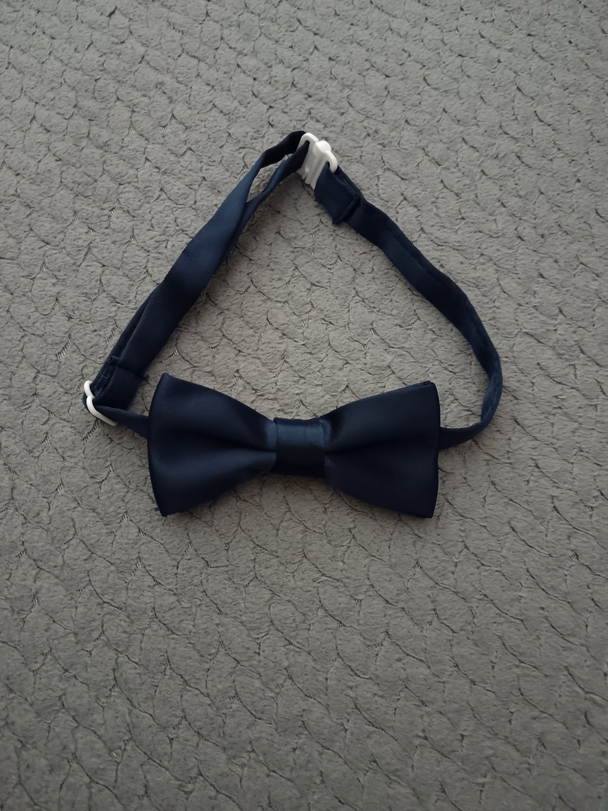 Predám oblek, oblečený 1x. Rozmery na foto. Pozostáva zo saka, košele s krátkymi rukávmi, nohavíc(dajú sa ešte predĺžiť, stačí odparat), motýlika a topánok vel. 35(cca 22,5cm).