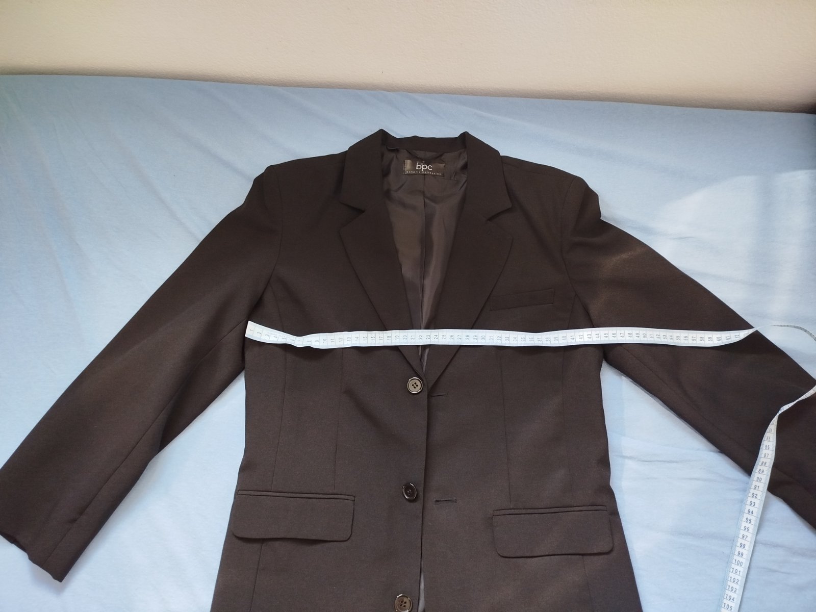 zn. Garnitex, kvalitný, 1x oblečený, 45%vlna 52%elastan 3%viskoza, nohavice - pás 39cm, dĺžka 103cm,sako - pod pazuchami 48cm, pás 44cm, dĺžka saka 72cm, rukáv od pleca 64cm, šírka v ramenách 40cm ...
