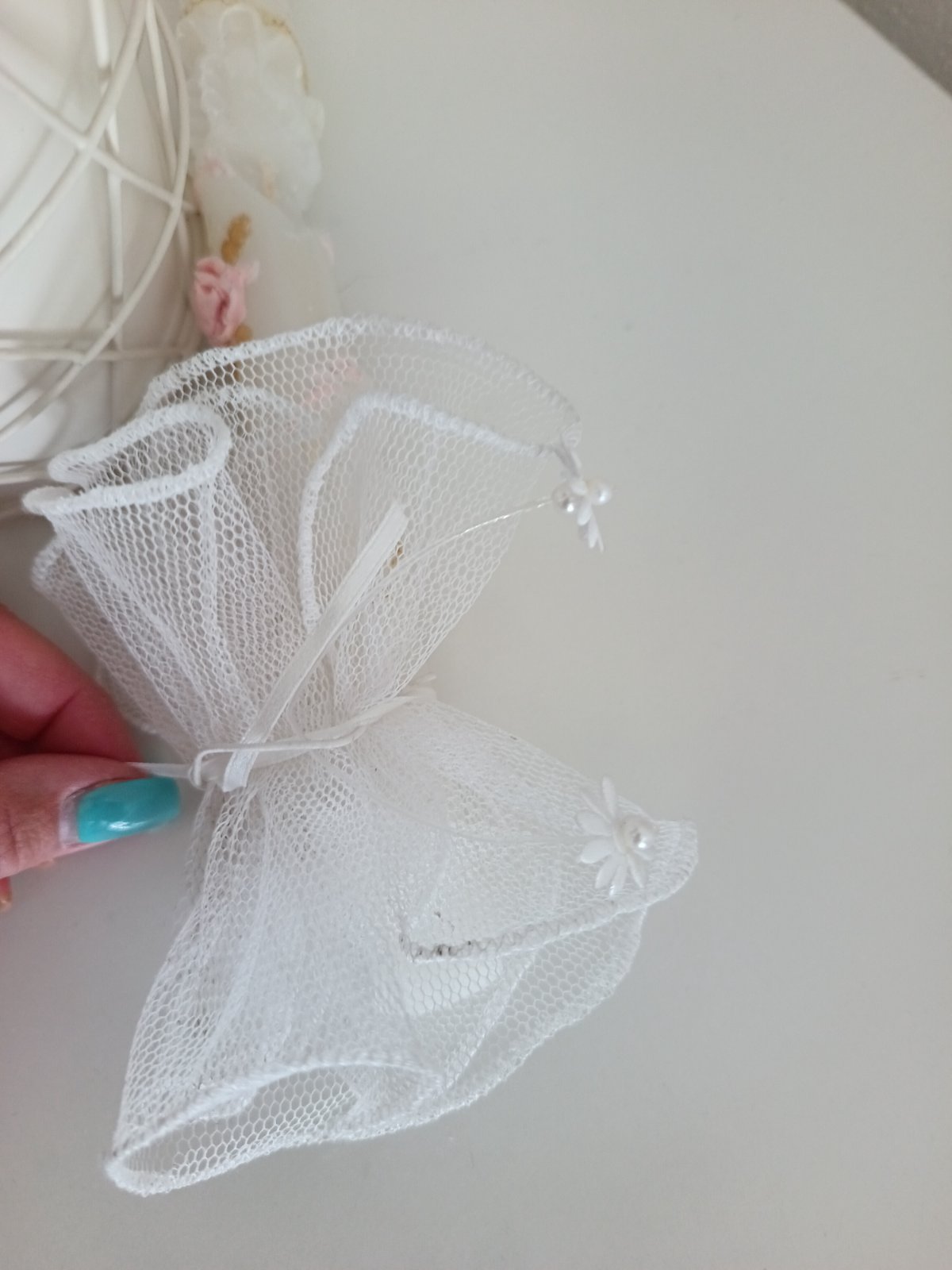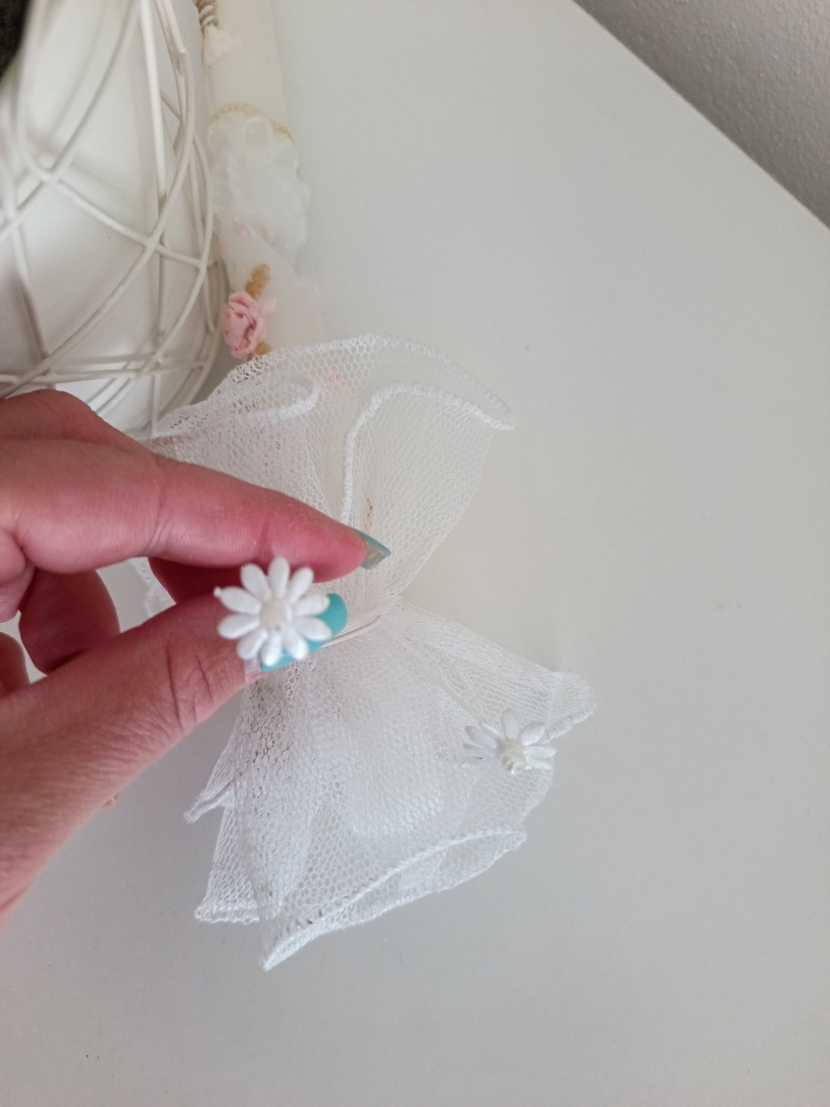 Predám krásnu slávnostnú tylovú ozdobu na sviečku.