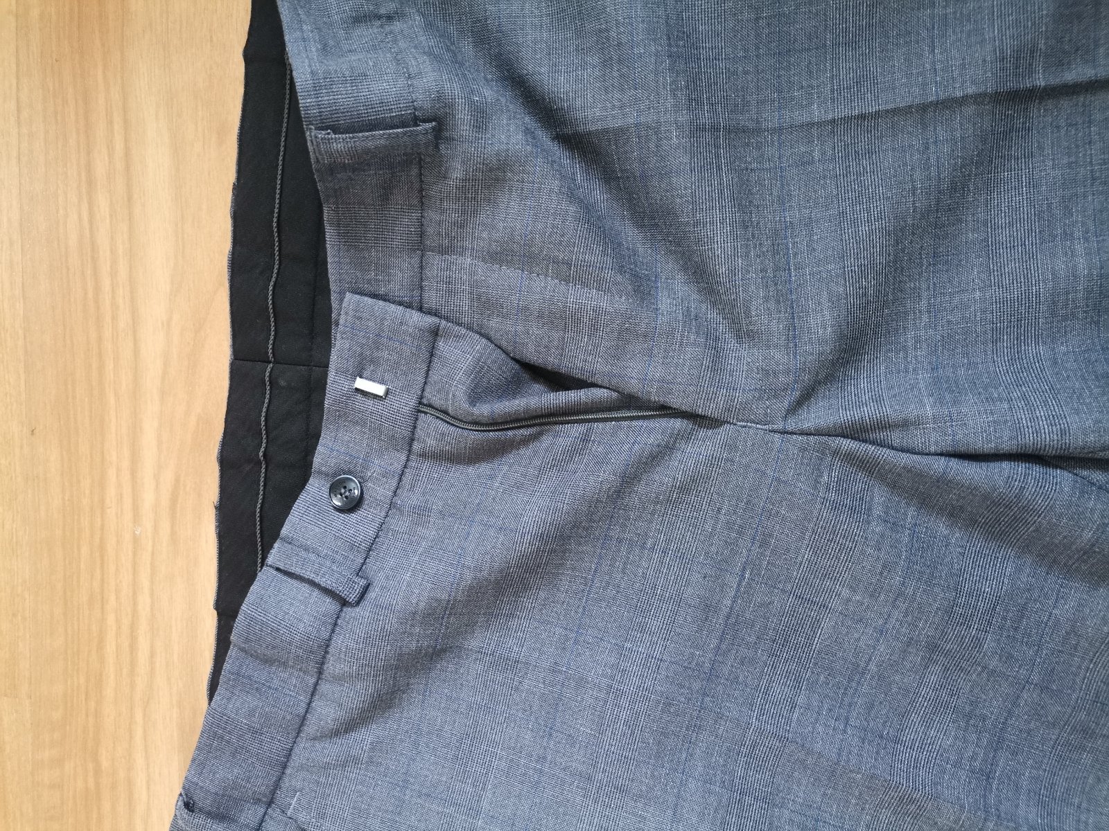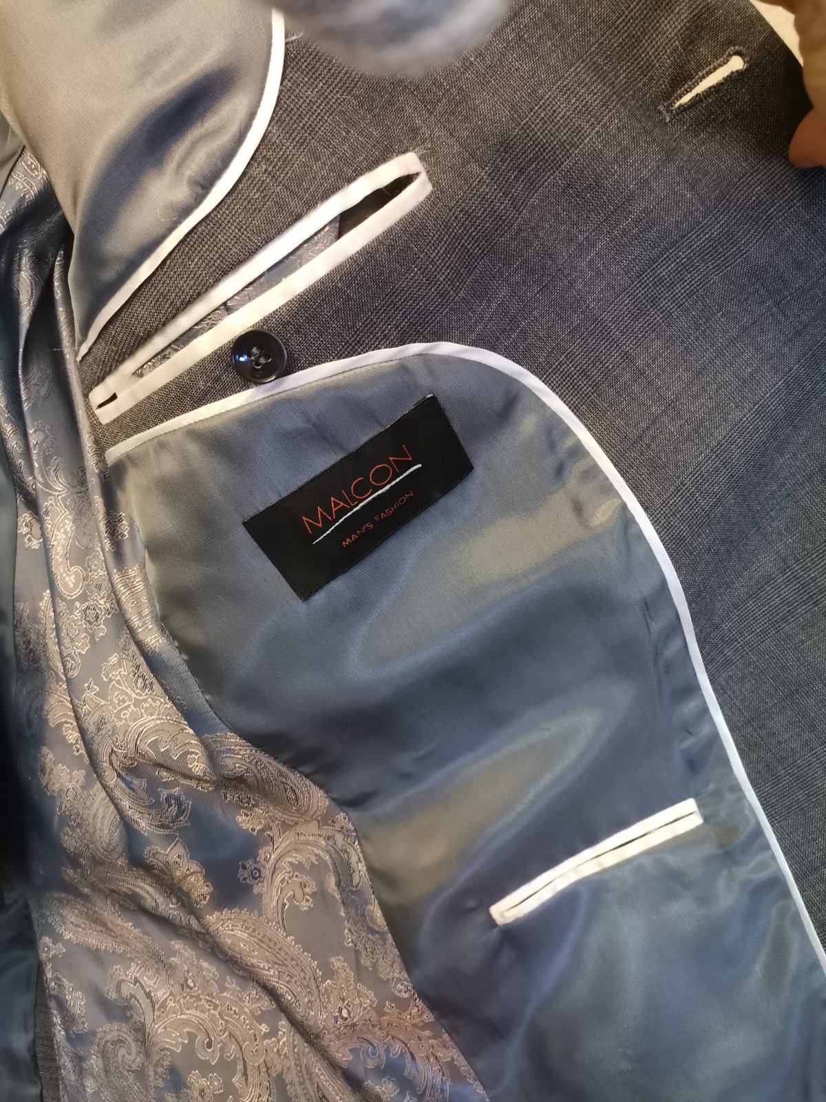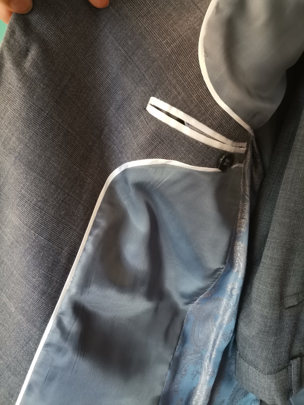 Kvalitný pánsky / chlapčenský oblek svetlosivej farby s károvaným vzorom - v odtieňoch sivej farby s modrým pásikom, bez poškodení. Bol kupovaný v OK móde. Syn ho mal párkrát oblečený, ale už z neho vyrástol.
