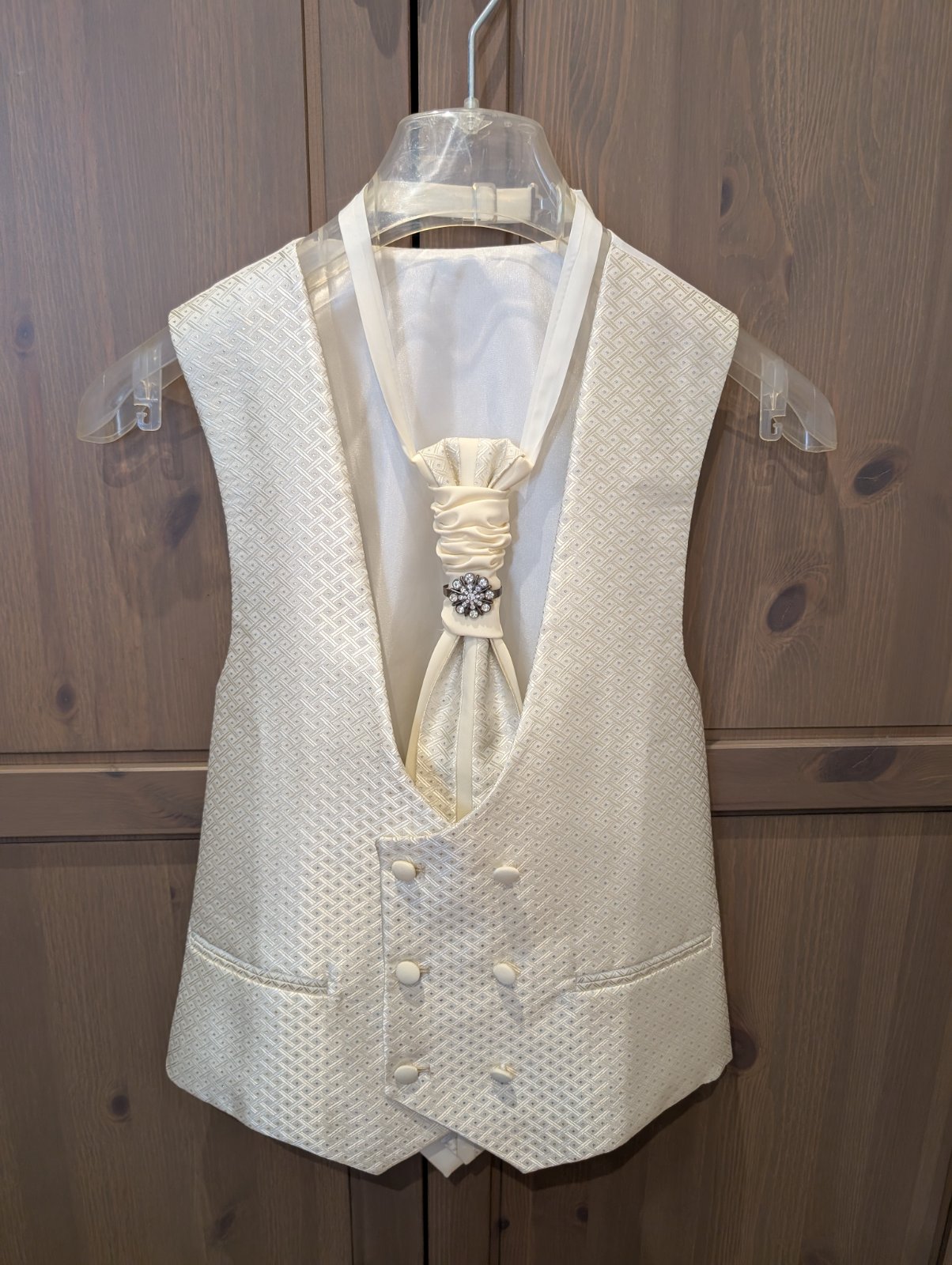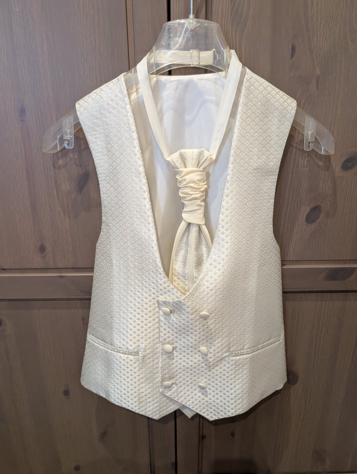 Vesta 1x oblečená na svadbe. Kravata a motylik ani raz. Ako nové. Brošňa z kravaty sa dá dať dole.