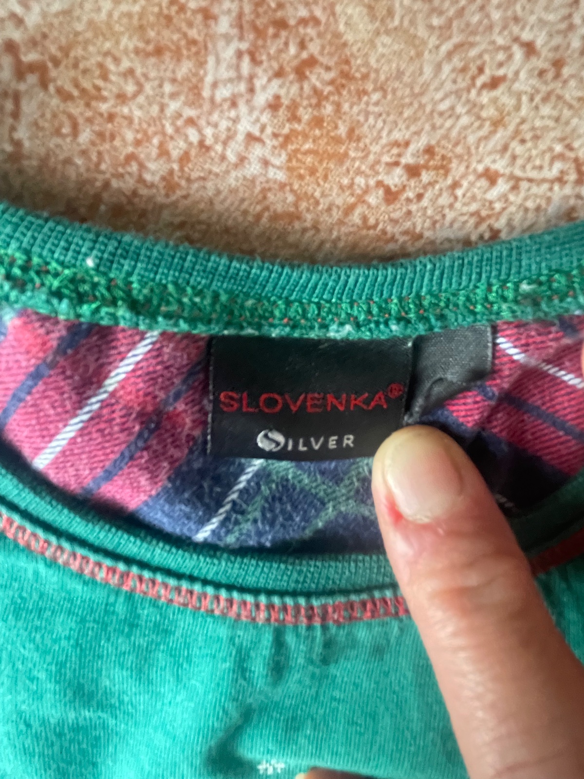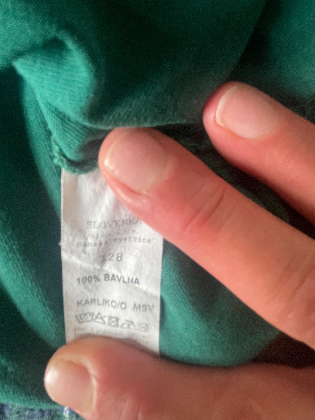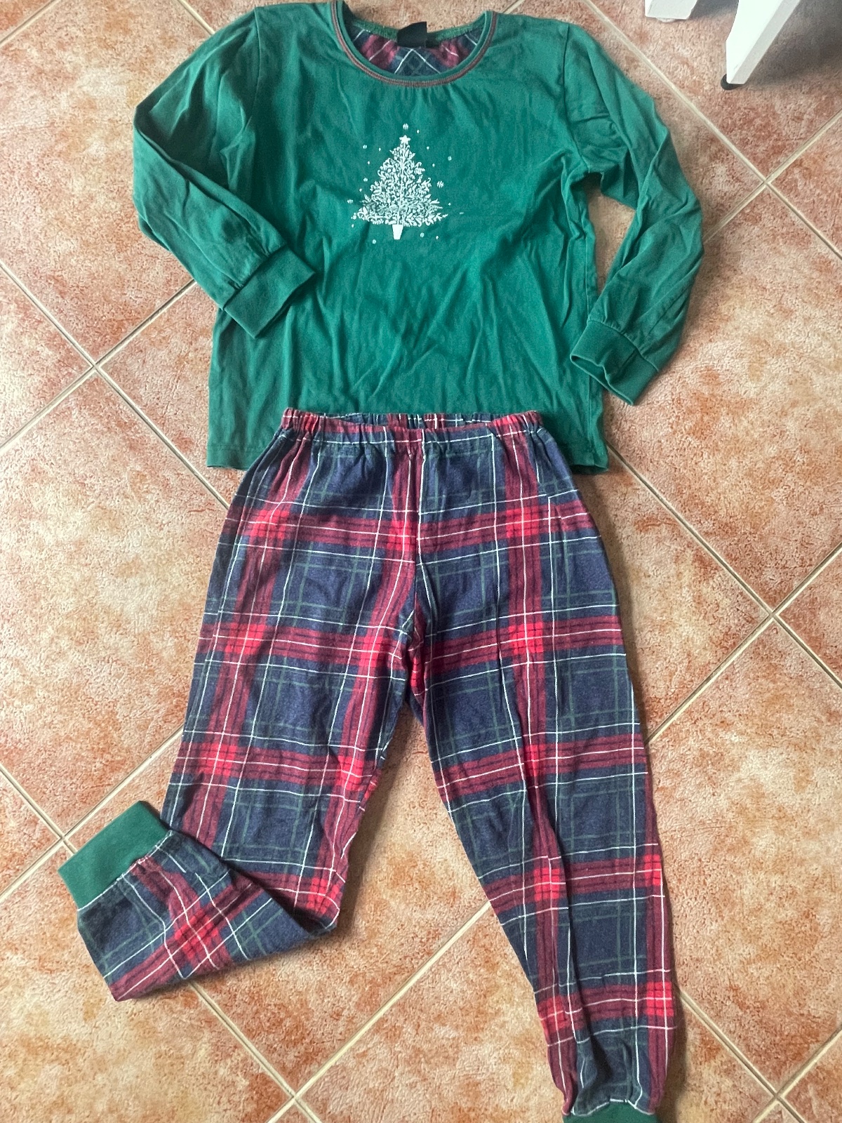 Pyžamko zo Slovenky, píšu 128, podľa mňa tak medzi 122-128. Nosili sme jednu sezónu na striedačku, čiže stav je výborný, okrem trošičku vyblednutých nohavíc. Čistá bavlna.