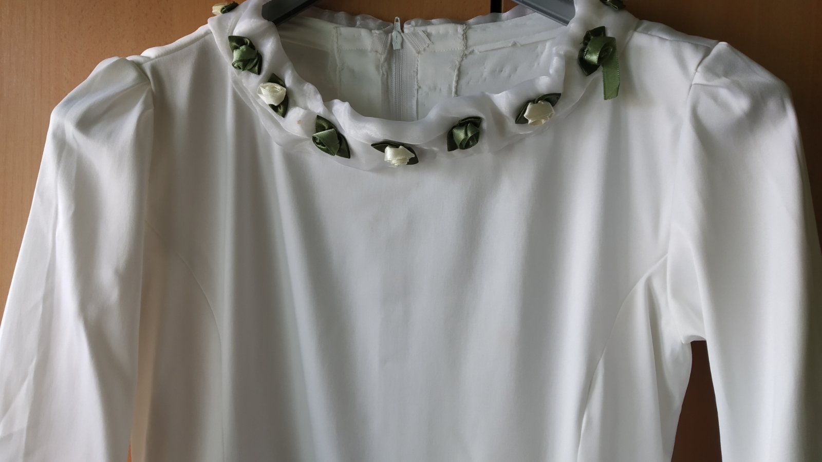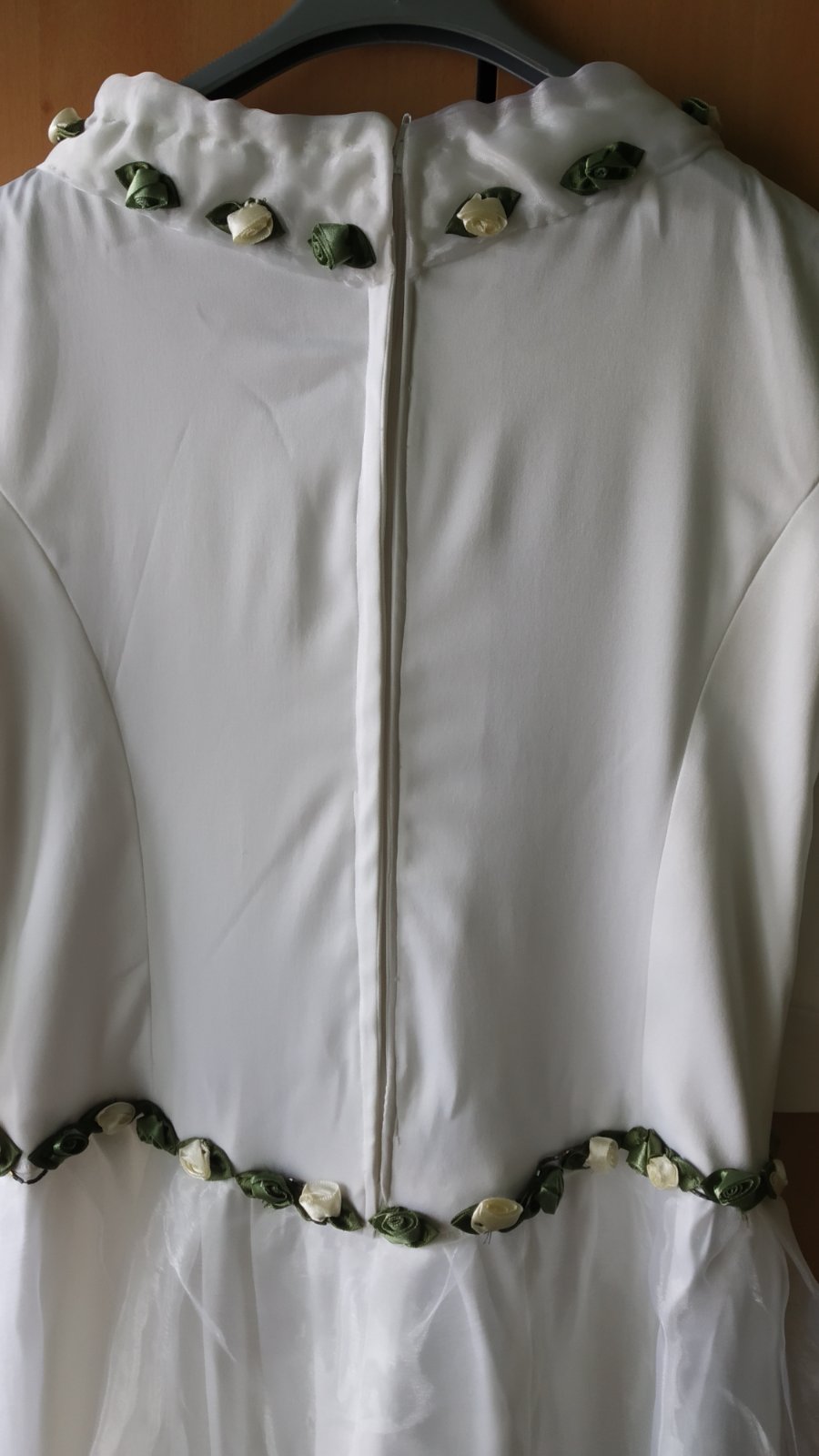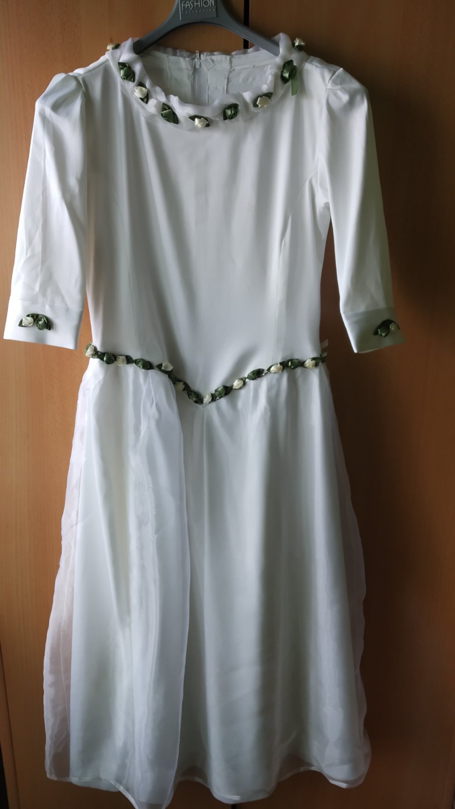 Krásne šaty na prijímanie alebo akúkoľvek rodinnú oslavu, ozdobené kvetmi, naživo krásne, bez chybičky.
