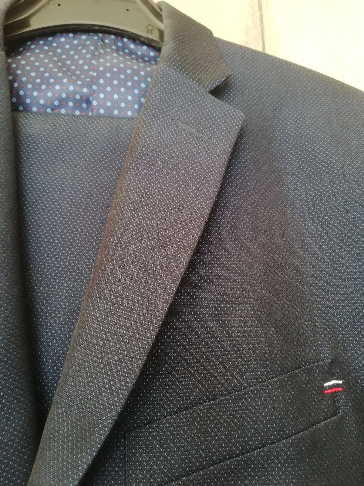 Predám oblek vhodný pre chlapca na birmovku alebo 1.sv.prijimanie. Krásna farba štruktúra látky modrá. Oblek bol nosený len pár krát príležitostne. Nemá známky poškodenia. Je to sako a nohavice jednej a tej istej sady. Odfotila som štítok kde je vidno rozmery.