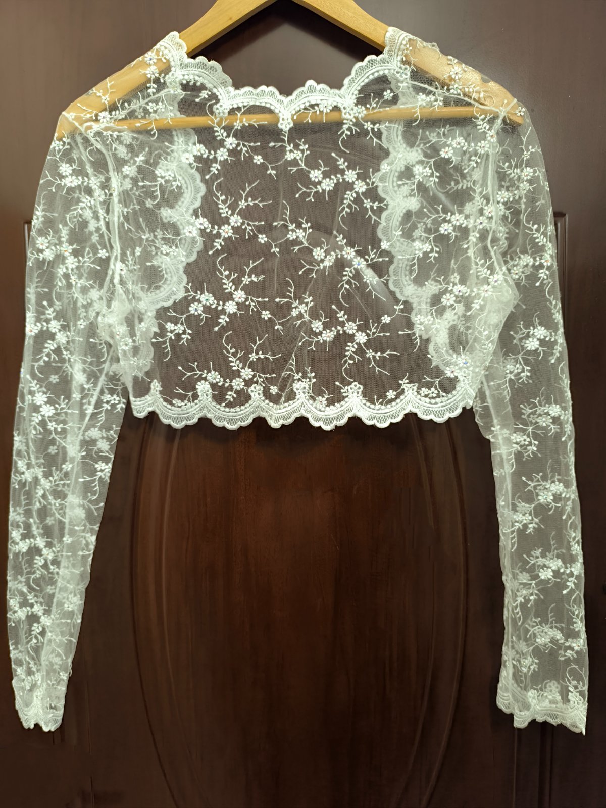 ✨ jemného čipkovaného bolerka s dlhým rukávom (veľkosť L)
