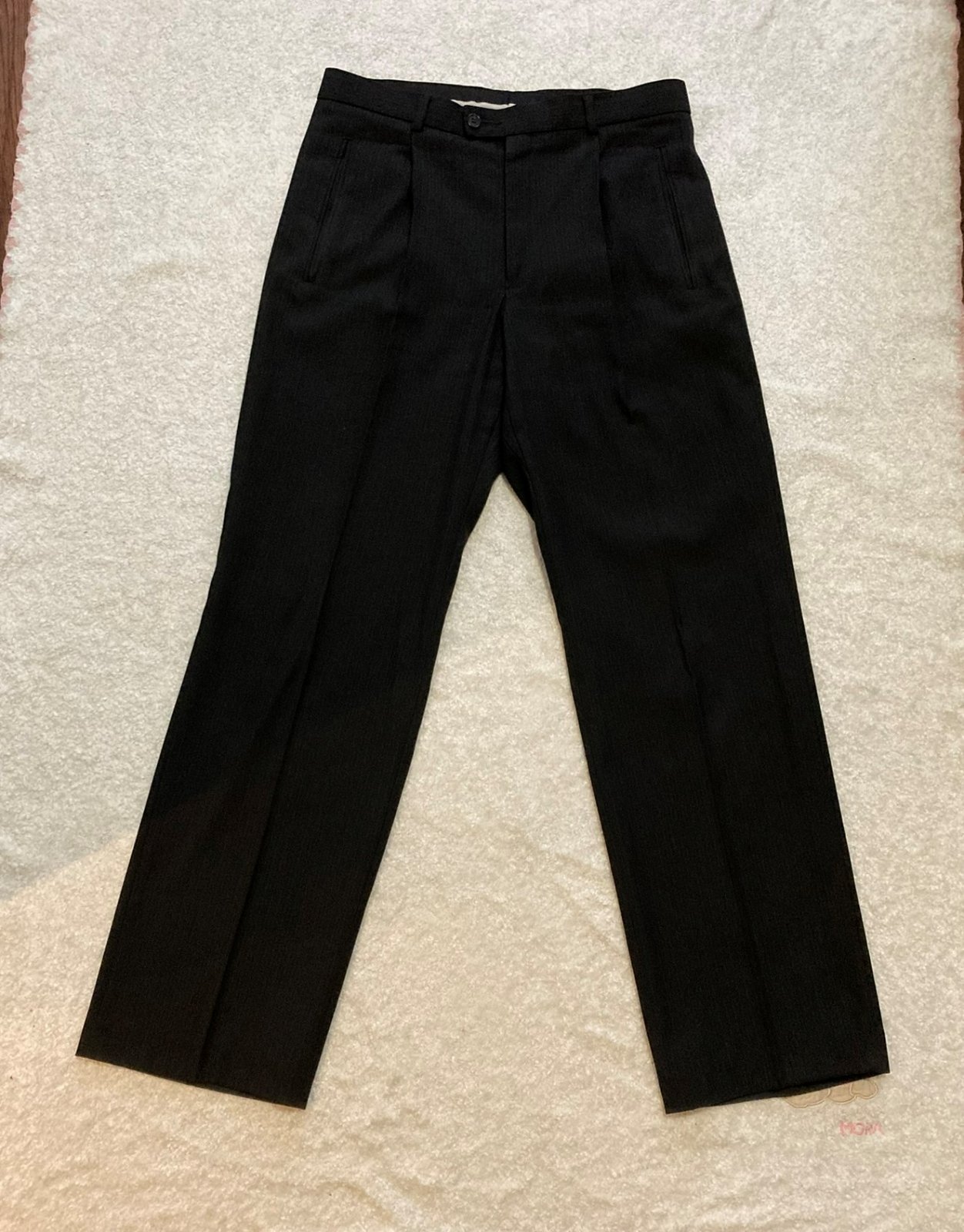 Výrobca JAMEL (Slovensko), farba tmavošedá. Sako má 2 vnútorné a 2 vonkajšie vrecká, vesta má 2 zaslepené vrecká. Nohavice majú 2 vrecká predné a jedno zadné.