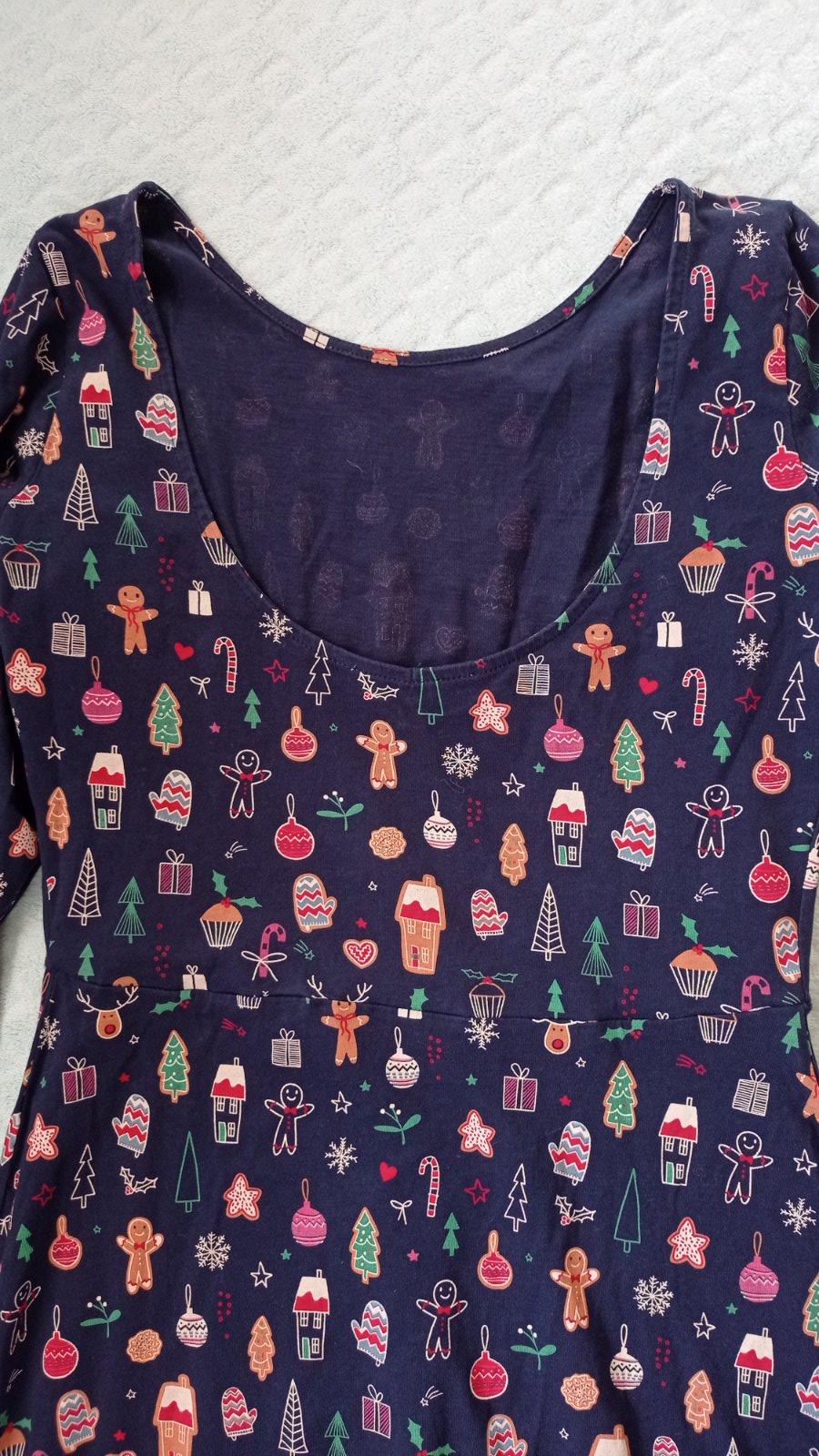 Vianocne saty, zn. Next, vzadu maju okruhly vystrih. Dlzka 81cm, sirka 41cm, rukav od pleca 57cm. Bez chyb.