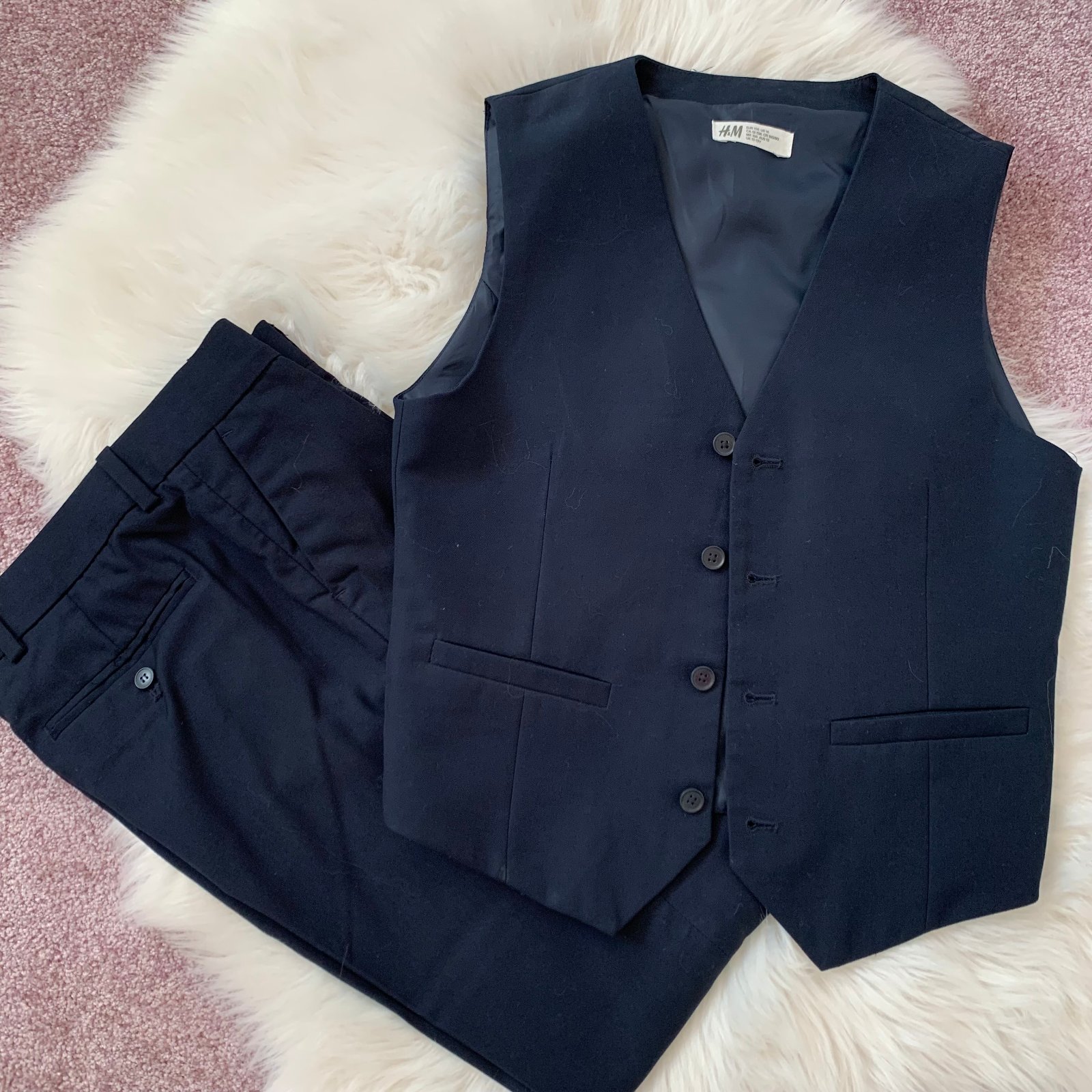 Klasická vesta + nohavice na rôzne rodinné príležitosti. Vesta - na 4 gombíky - dĺžka je 49cm, šírka je 39cm. Nohavice - bočné aj zadné vrecká - dĺžka je 97cm, šírka pásu je 33cm, vo vnútri je guma na stiahnutie. Vo výbornom stave. Jeden krát oblečené.