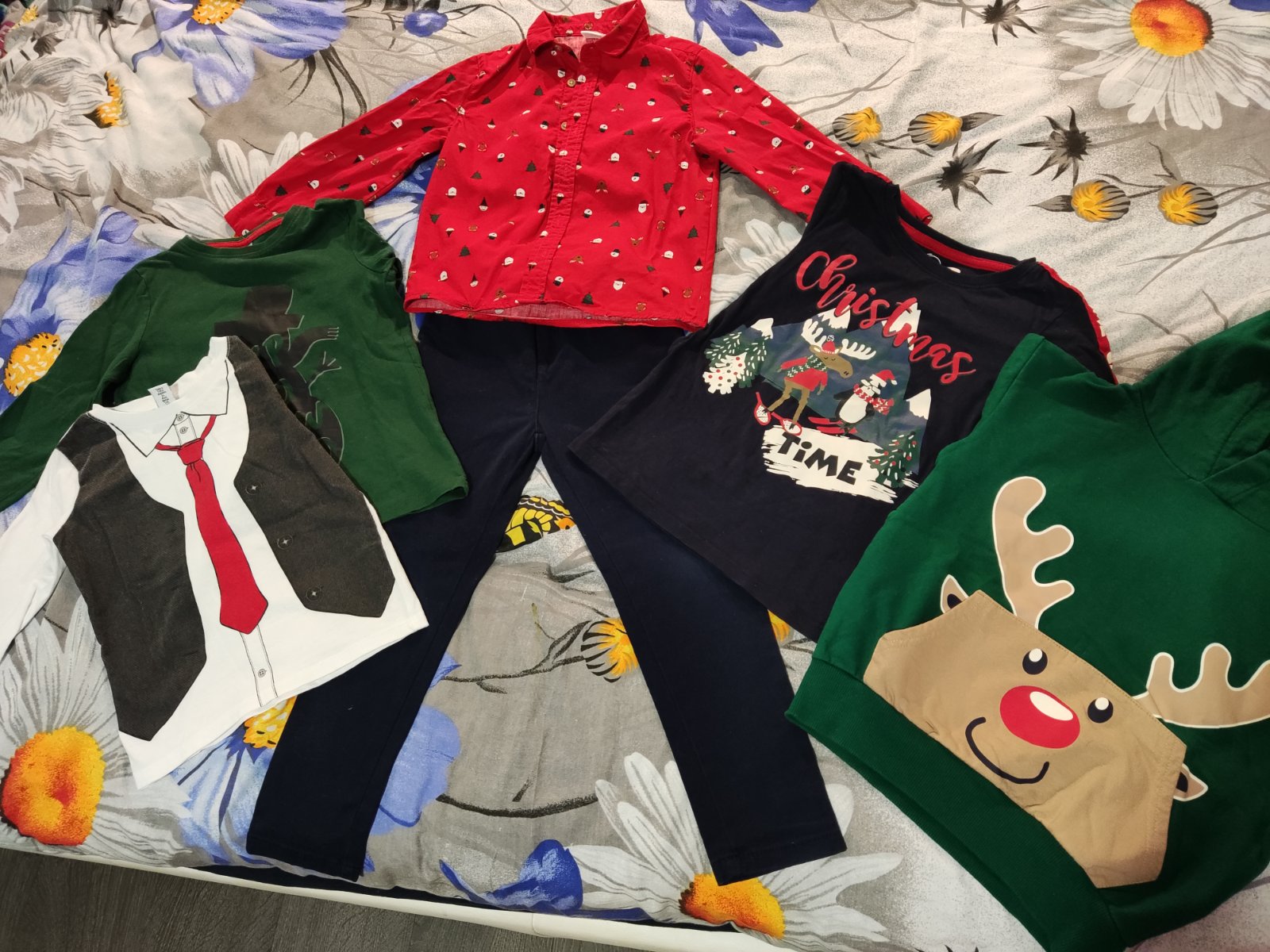 Set na Vianočné fotenie Veľkosť 110, nohavice sú 5/6 ale sú menšie sedia na 110 Košeľa H&M Nohavice Original Marines Bez poškodenia