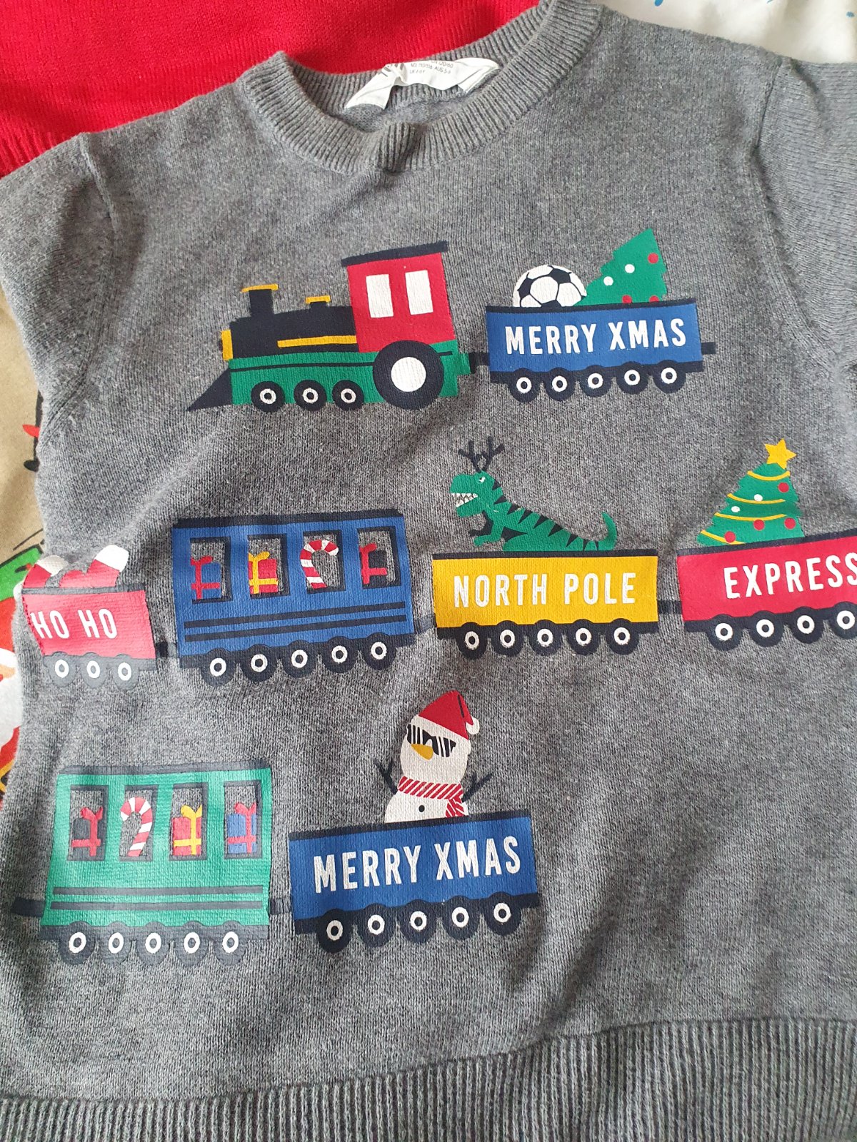 Rozkošný vianočný svetrík vo veľmi dobrom nosenom stave (bez poškodení; jemne spratý). Obliekanie cez hlavu, bez zipsov a gombíkov. Značka: Sinsay; veľkosť: 110 (4 - 5 rokov).