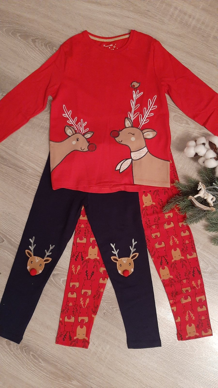 Krásny komplet, vianocny/zimný motív, tričko +2 leginy. Nové ešte s visackou.