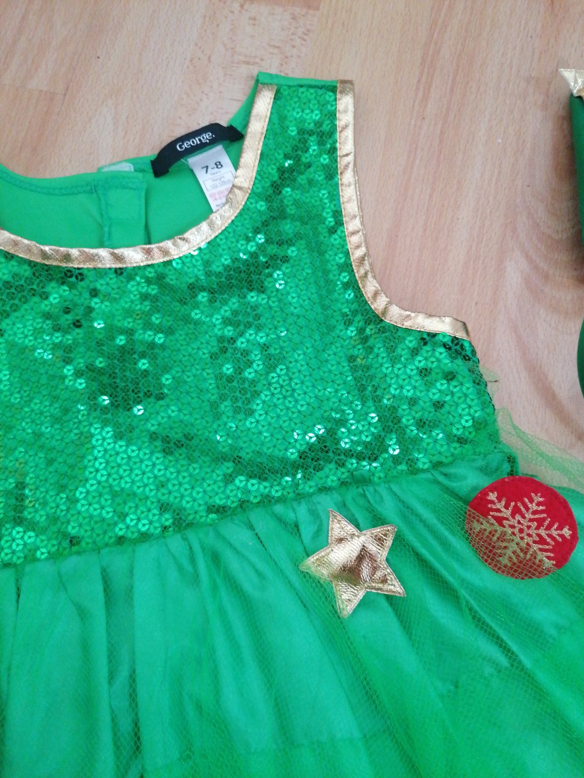 Krásne šaty sem tam zatiahnuté, využite bud na vianočné fotenie alebo aj karneval, veľ. 122/128