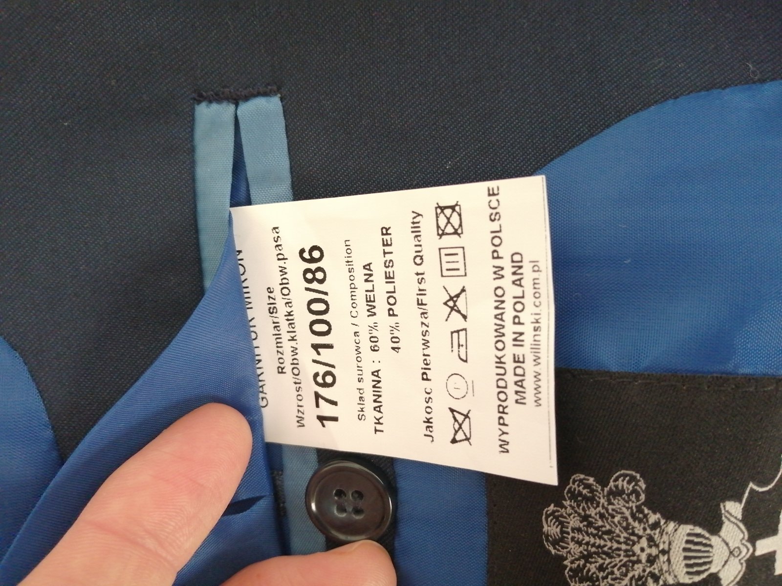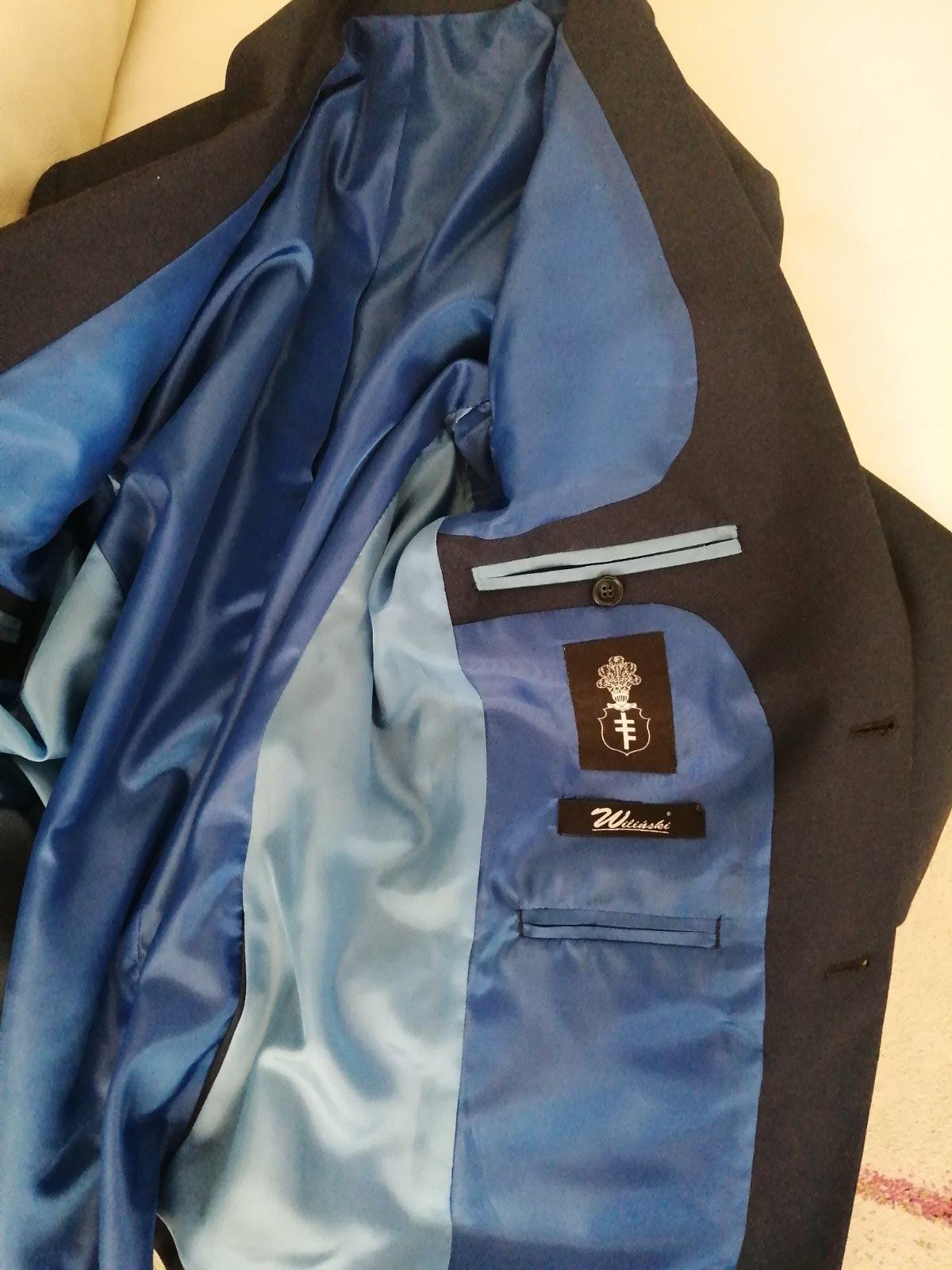 Ďalšie foto pridám neskôr. Je vhodný pre štíhlych vysokých chlapcov, ale i mladých pánov. Na saku je písaná veľ. 176, na nohaviciach 182. Syn mal 182cm a sako mu bolo dobré.