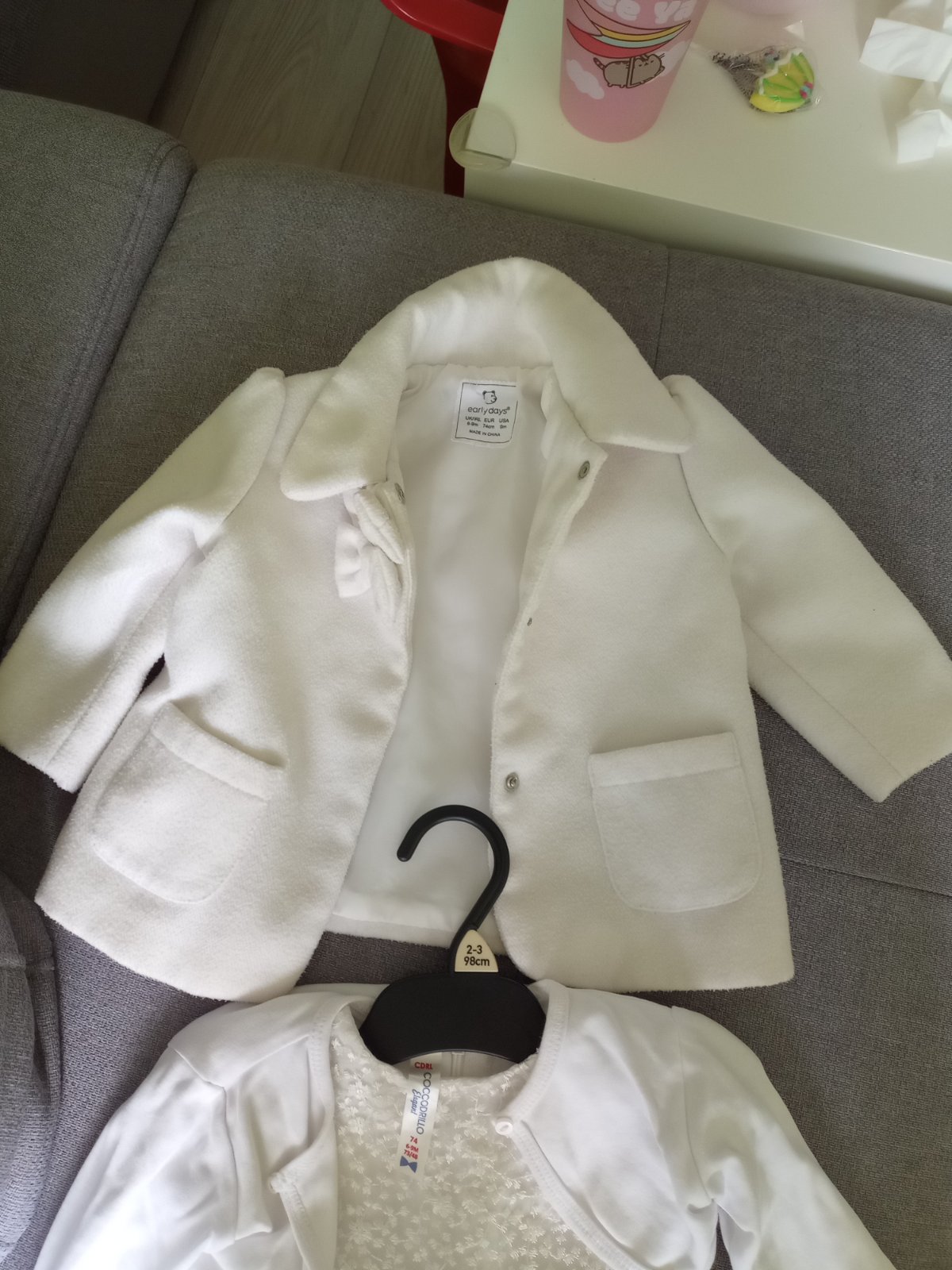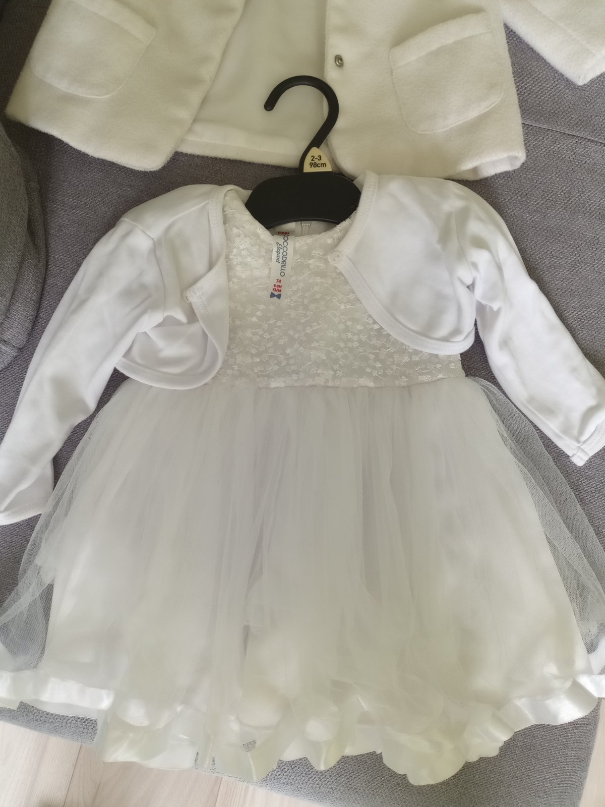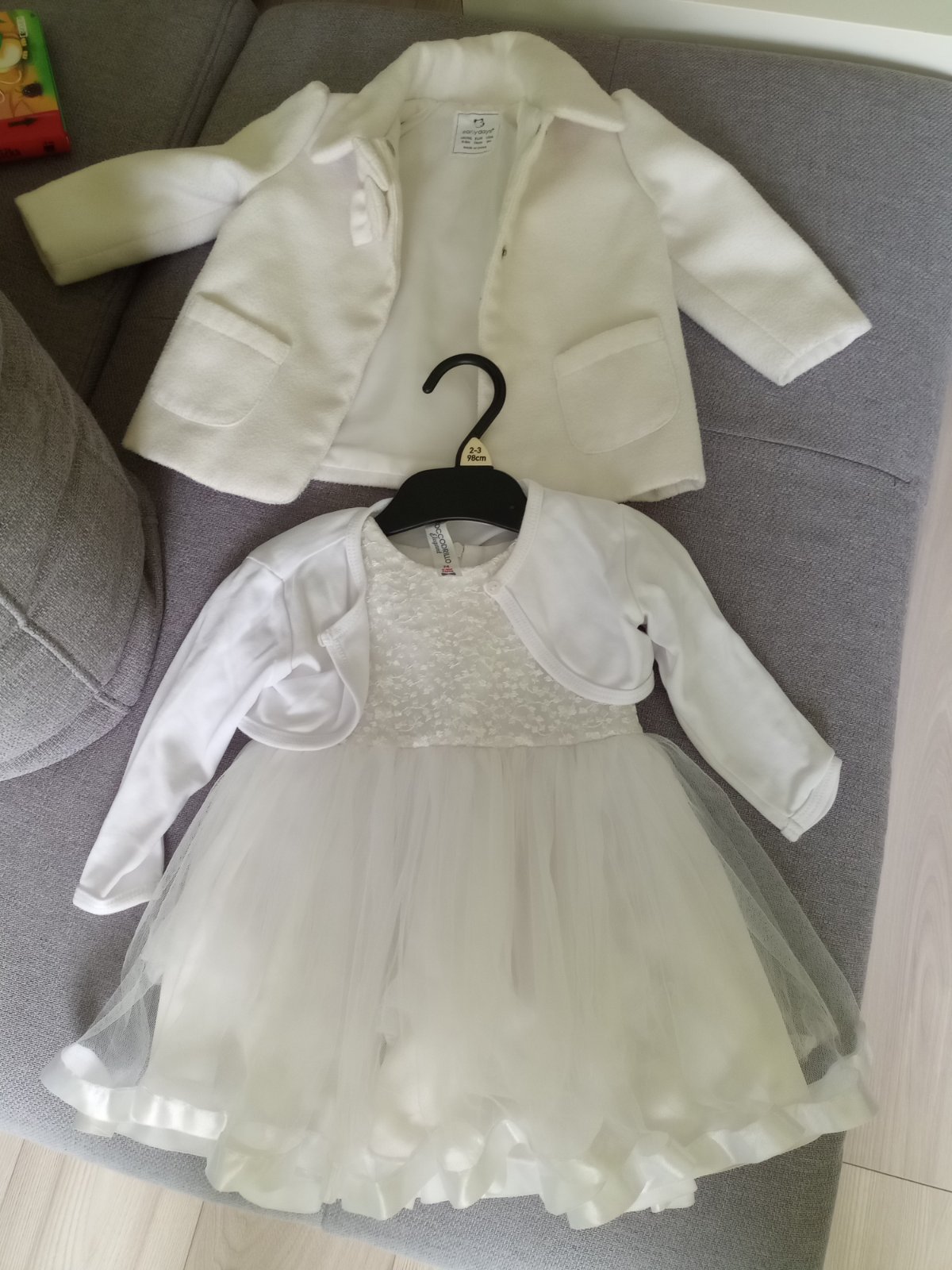 Predám oblečenie na krst vo veľkosti 74, kabátik plus šaty s bolerkom za 10 eur plus poštovné alebo packeta. Packetu si viete aj vy zaplatiť.