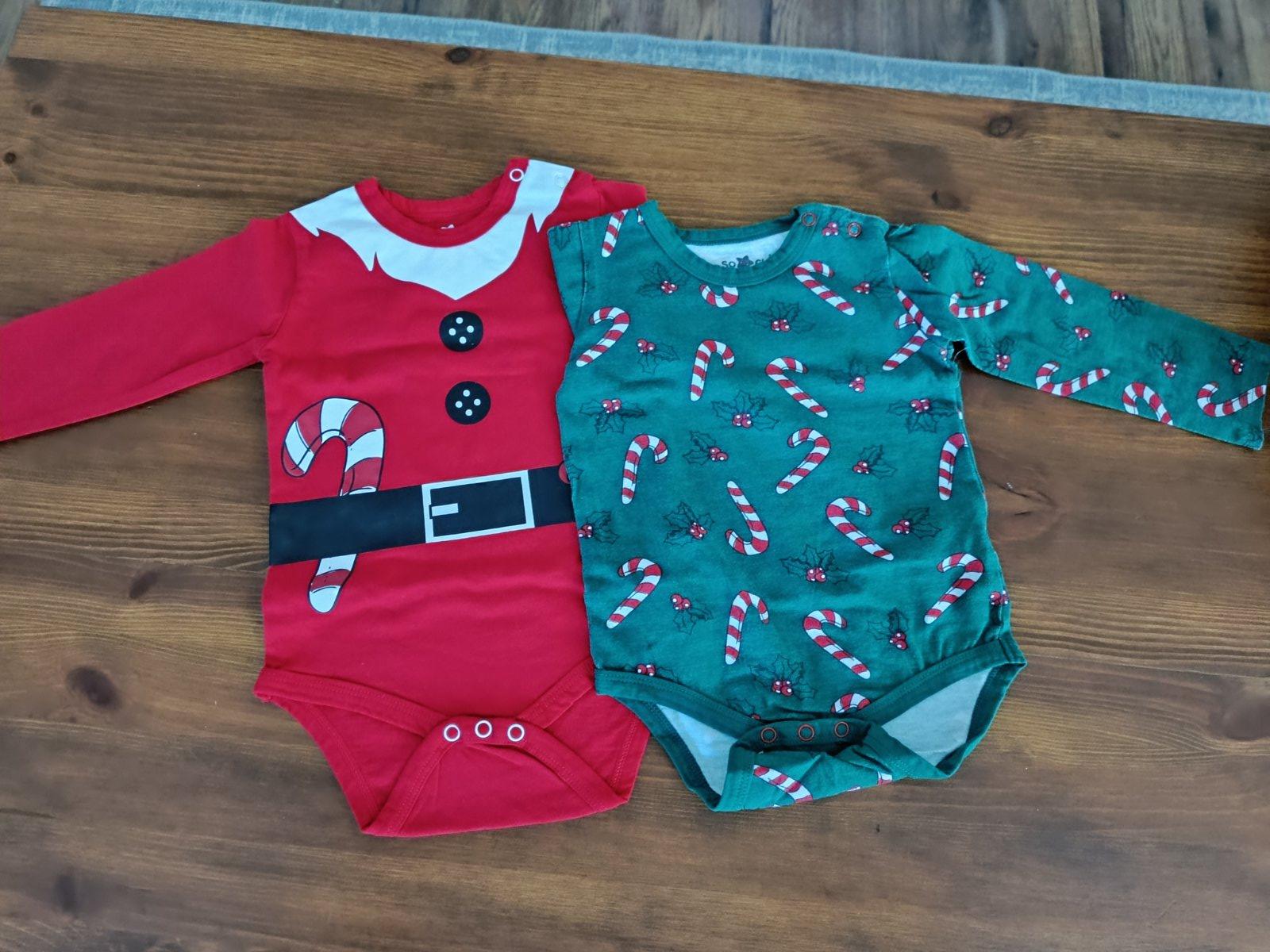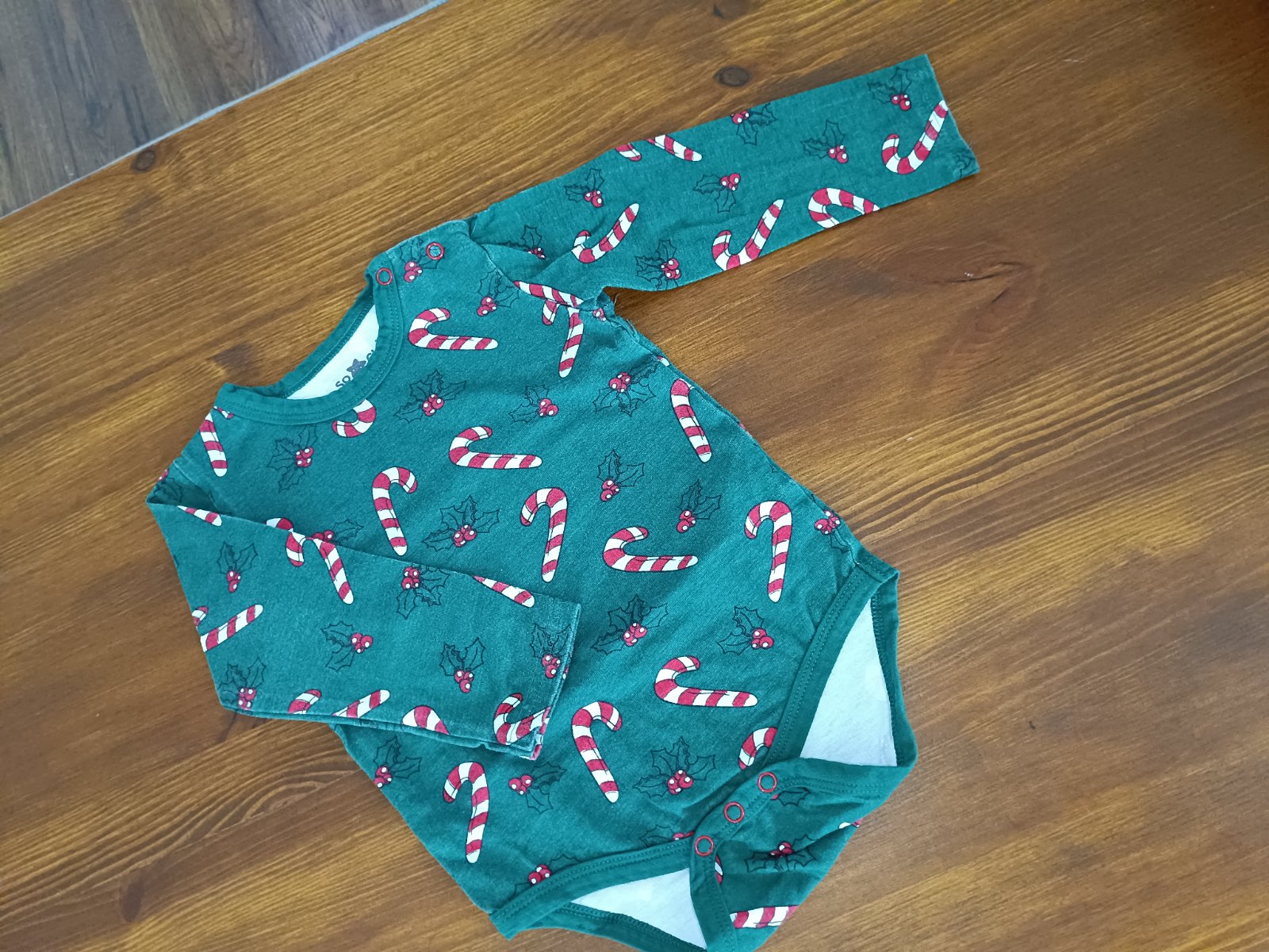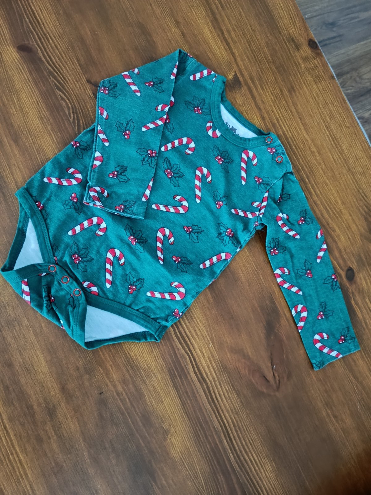 Body podbradnik a popucky s vianocnym motyvom. Body maju jemne zmolky. Dlzka po zapnuti 38, rukav 26cm. Podbradnik vo vybornom stave zapinanie na suchy zips. Papucny protismykove, nepouzite dlzka c...